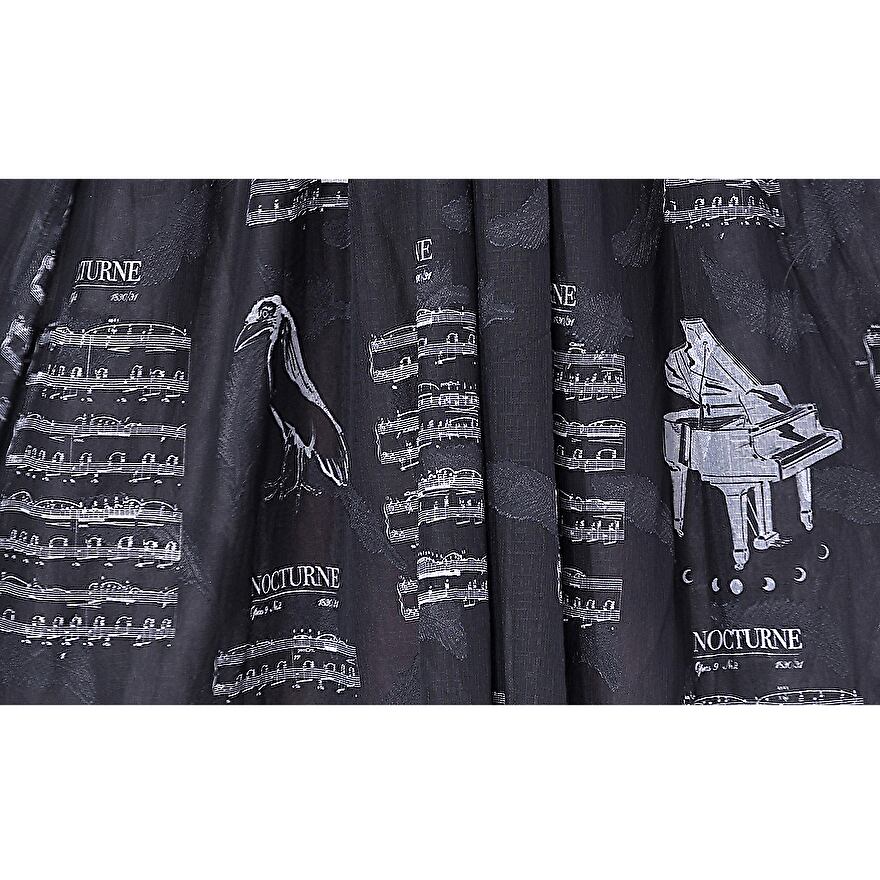 夜想曲のようなノクターン音符に三日月プリントがおしゃれなプリーツスカート