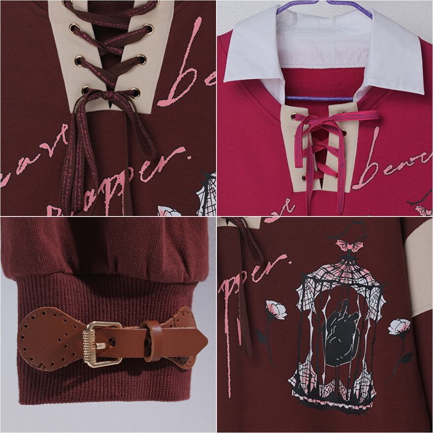 サブカル 服 地雷系 通販 ソフトロリータ トレーナー プルオーバー レースアップ プリント柄 JK