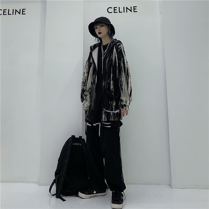 サブカル 服 地雷系 通販 カーディガン フード付き 絞り染風 レトロ ユニセックス ヒップホップ