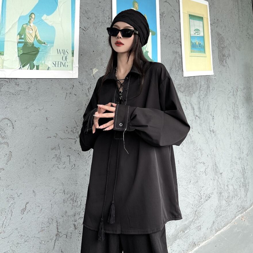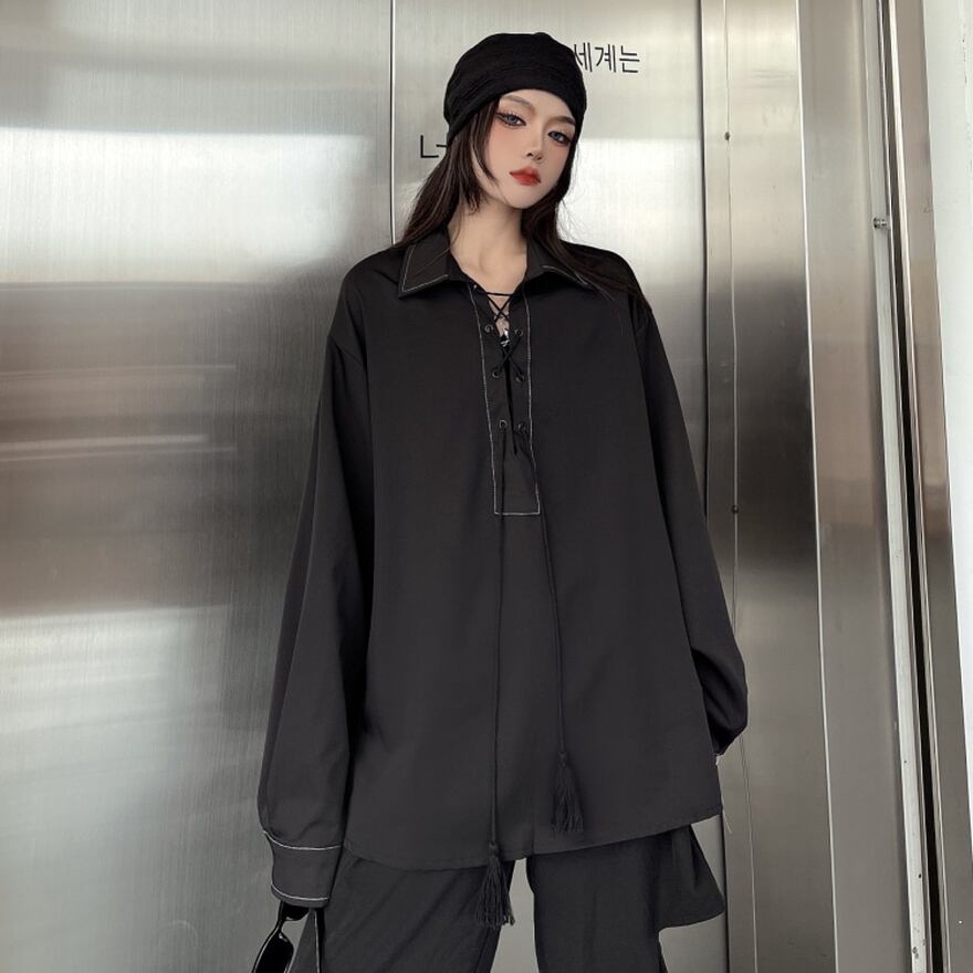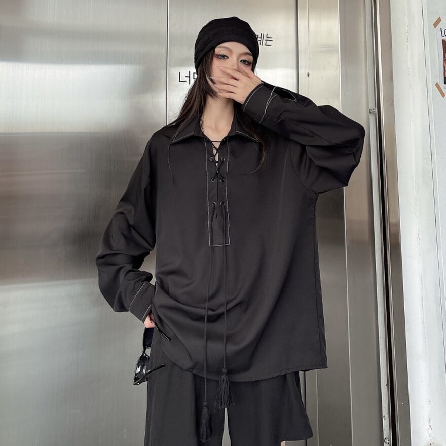 サブカル 服 地雷系 通販 長袖 シャツ レースアップ 闇かわいい ストリート系ゴシック