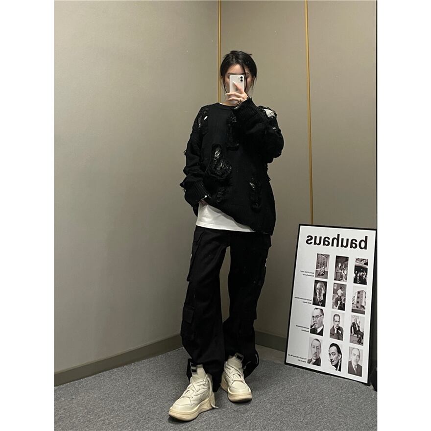サブカル 服 地雷系 通販 ニット セーター クラッシュダメージ リバーシブル ユニセックス 闇かわいい