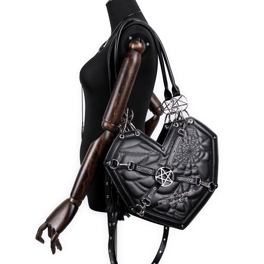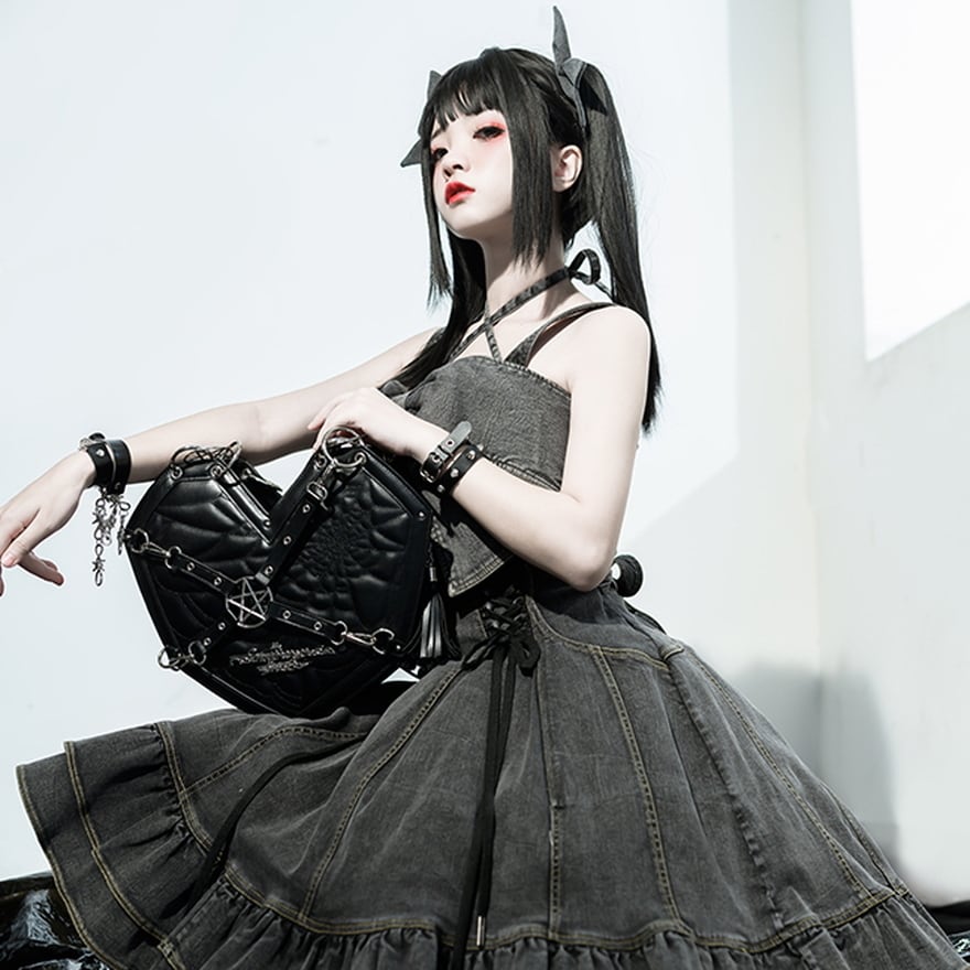 病み可愛い五芒星メタルギアのハート型ショルダーバッグです