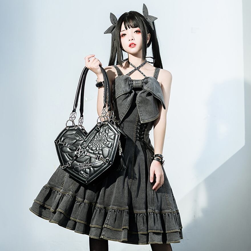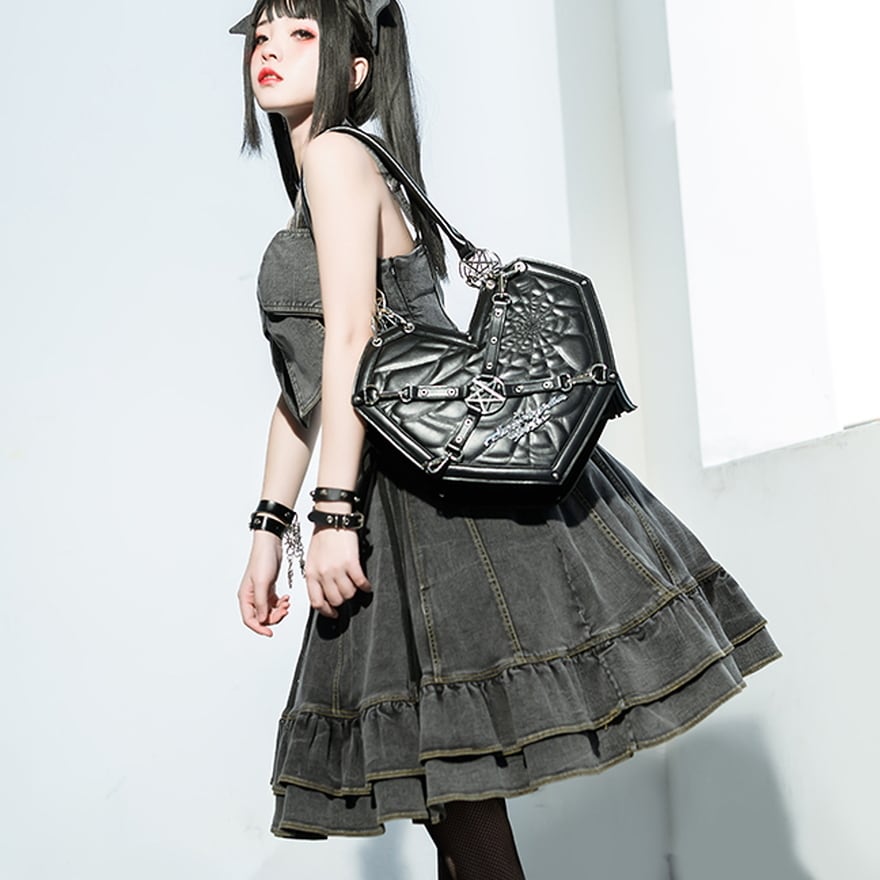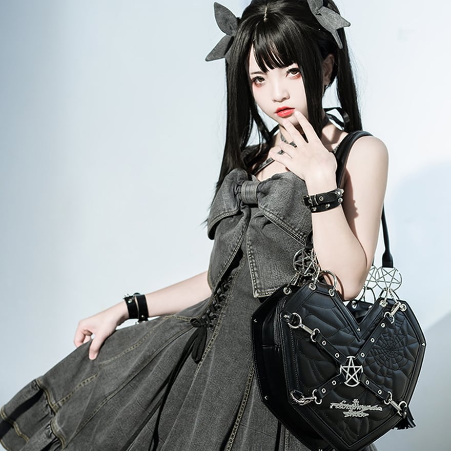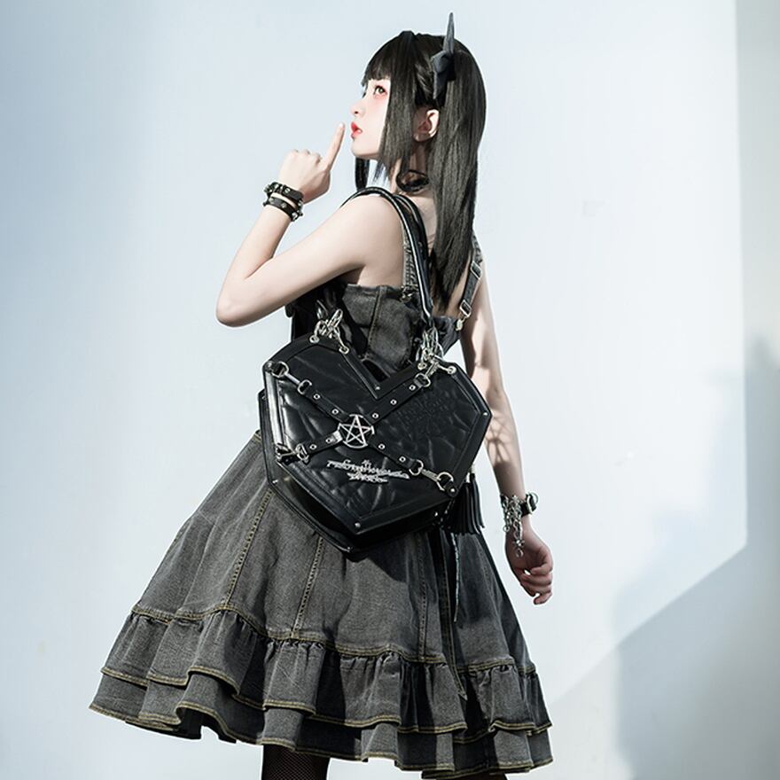 サブカル 服 地雷系 通販 ショルダーバッグ ハート 五芒星 メタルギア 闇かわいい 系