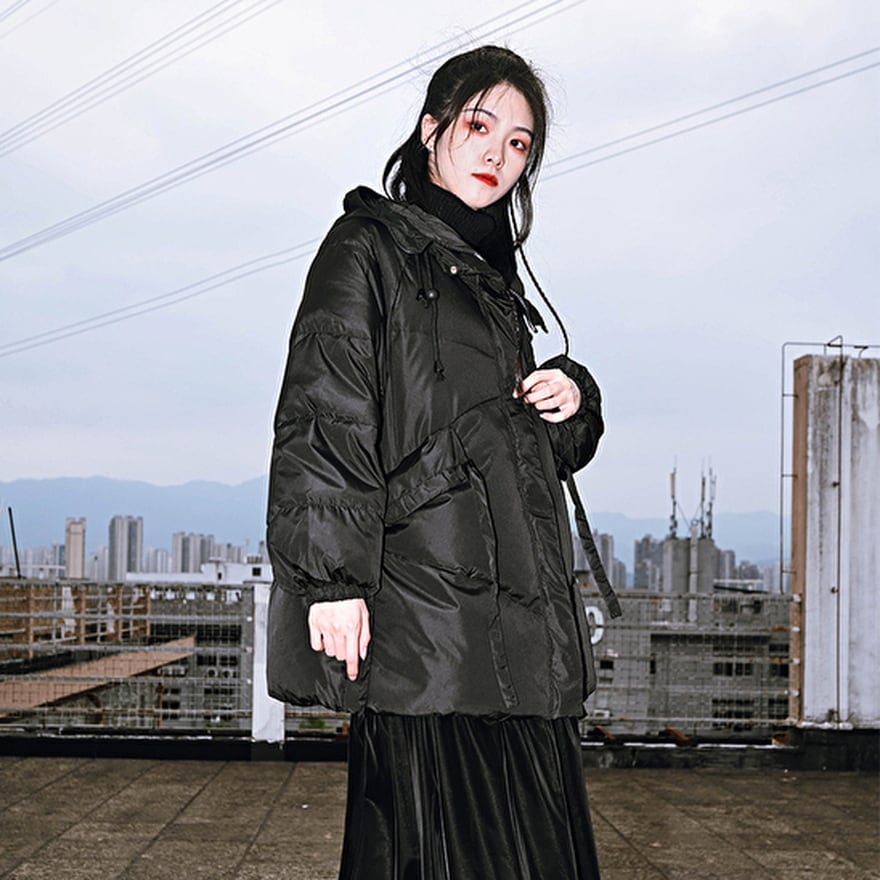 サブカル 服 地雷系 通販 チャイナ風服 チャイナ風服 古怪舎 ダウンジャケット ホワイトダックダウン フード付き 防風 防寒仕様 大人ゴシック