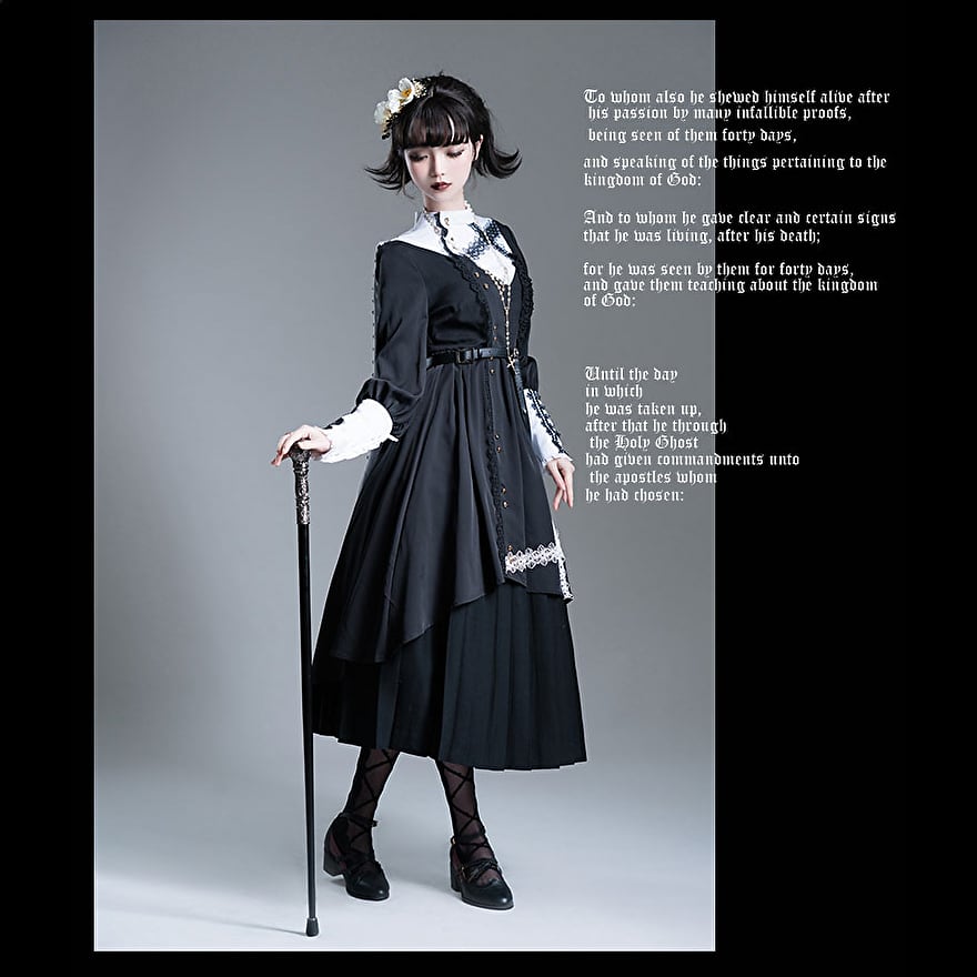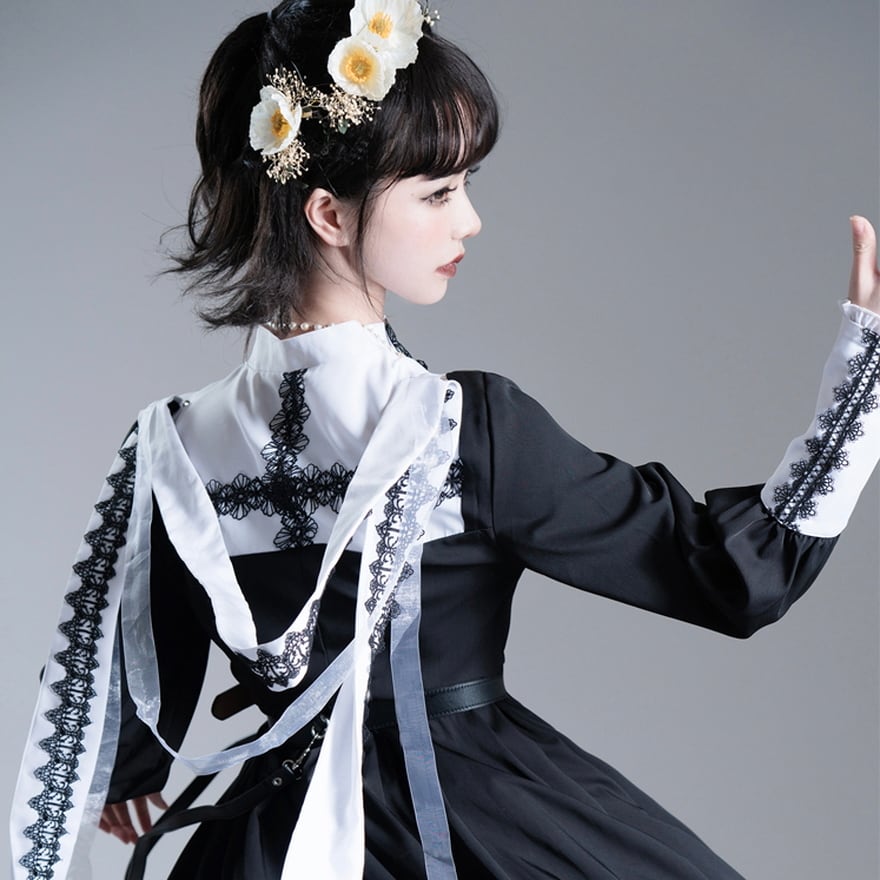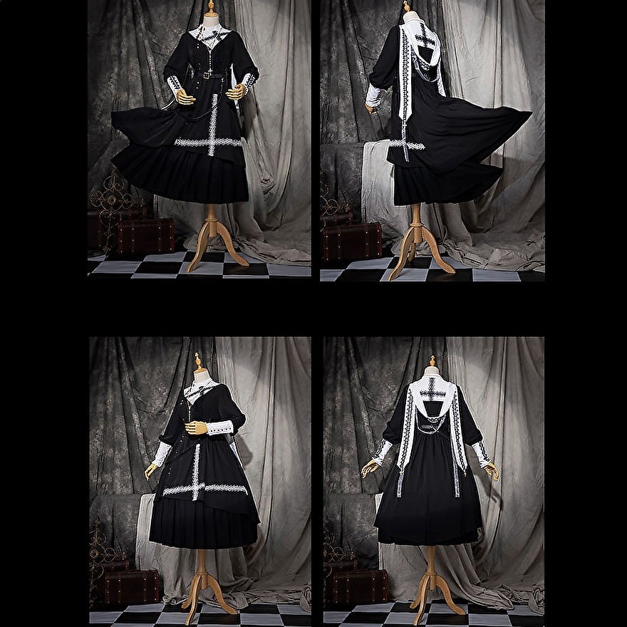 サブカル 服 地雷系 通販 ドレス ワンピ ミリロリ ベルト付き 闇かわいい 地獄少女 ハイウエスト レイヤード ロング丈