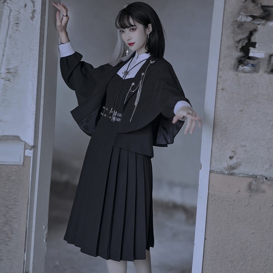 サブカル 服 地雷系 通販 セットアップ フルセット ドレス マント ブローチ ベルト 闇かわいい サブカル服 イベント衣装 コンカフェ