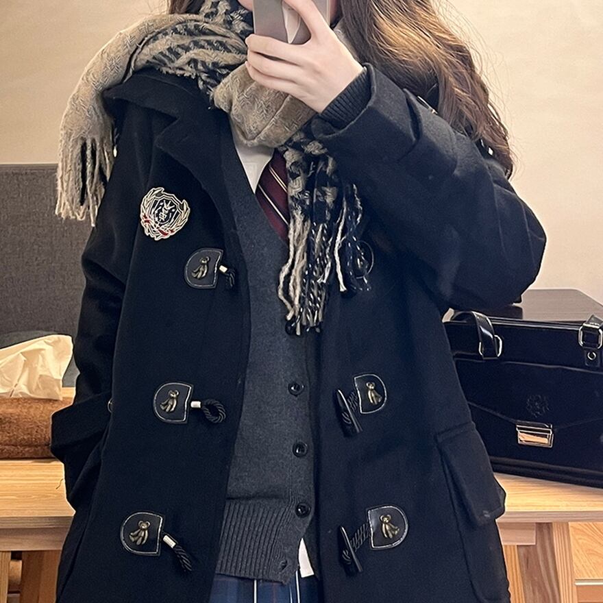 JKファッション鉄板のクラシカルなホーンボタンのコートです
