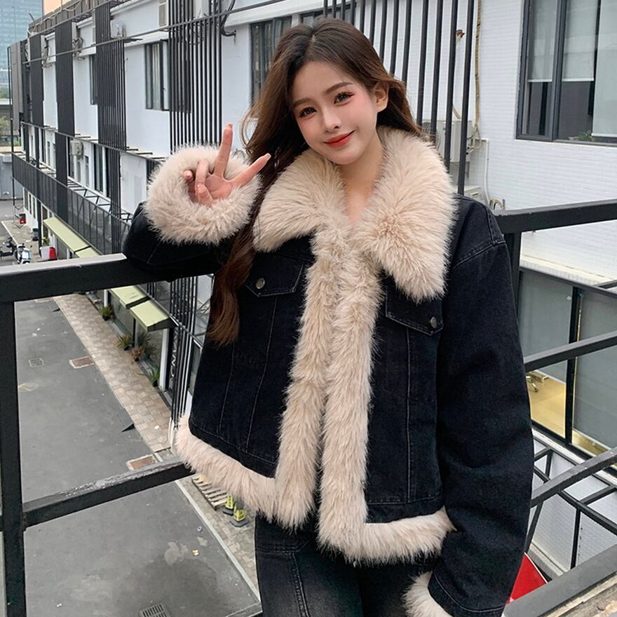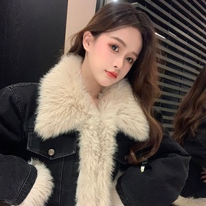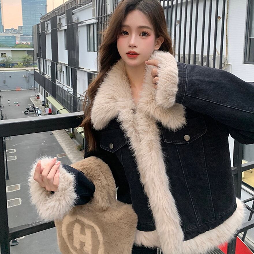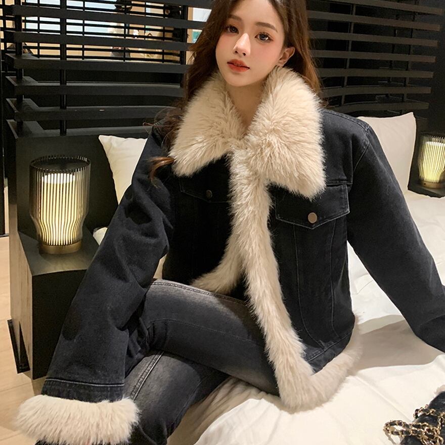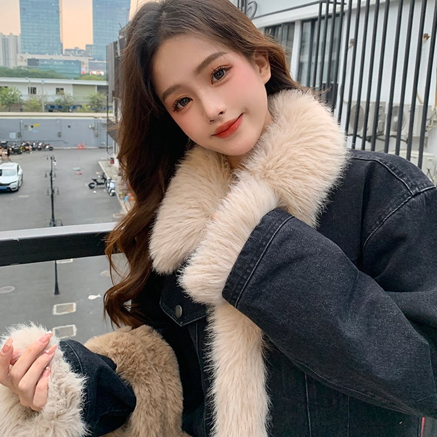 ふわふわフェイクファーが高見えなデニムジャケットです。