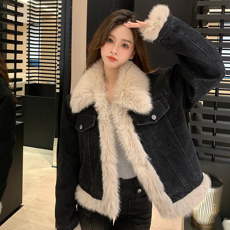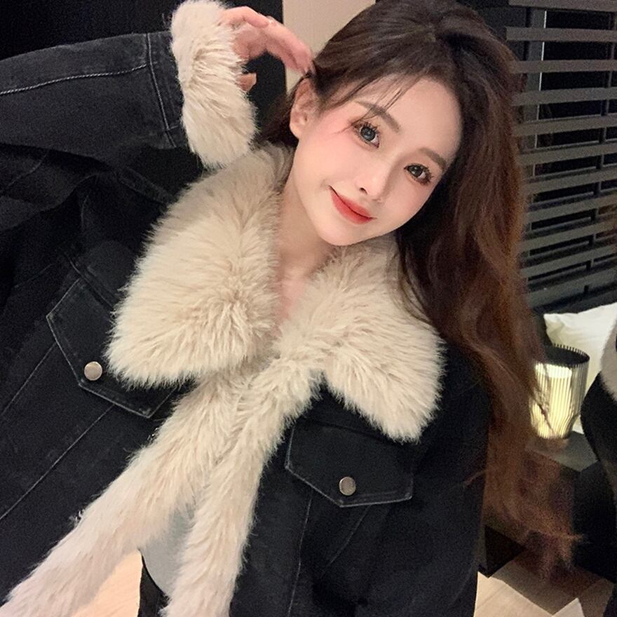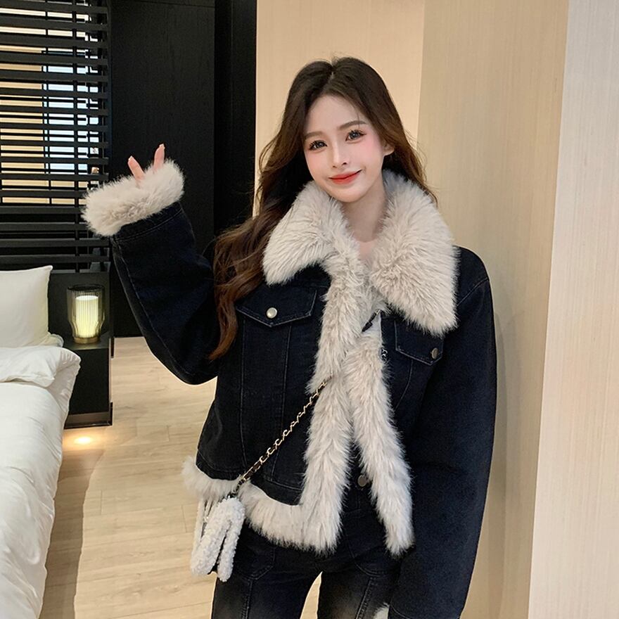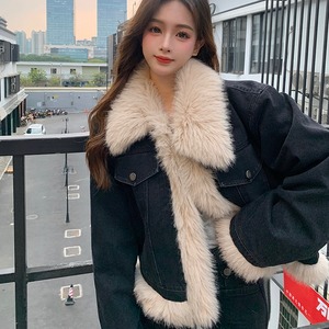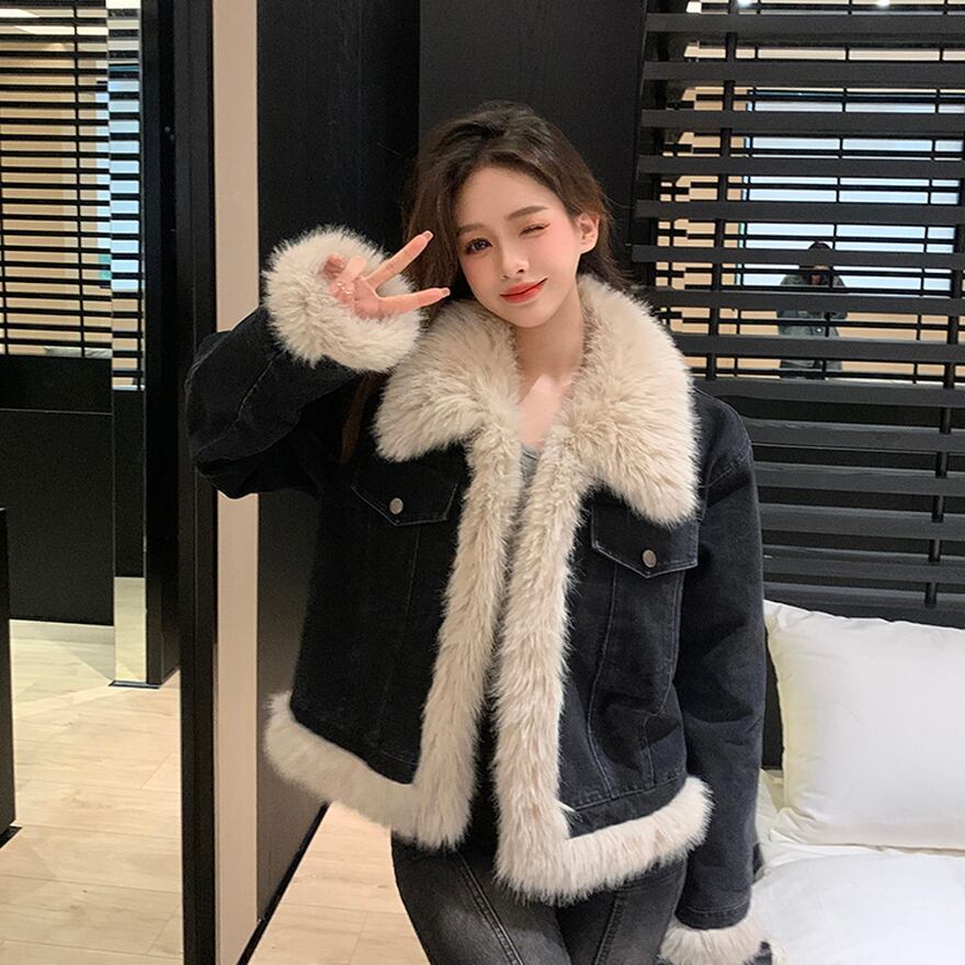 ふわふわフェイクファーが高見えなデニムジャケットです。