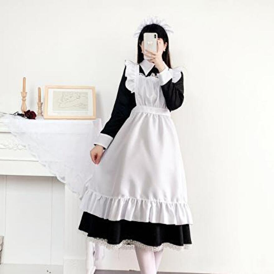 サブカル 服 地雷系 通販 メイド服 長袖 ロング丈 コスプレ ロリータ 衣装 レトロ 制服 コンカフェ衣装 キャスト衣装 メイドカフェ