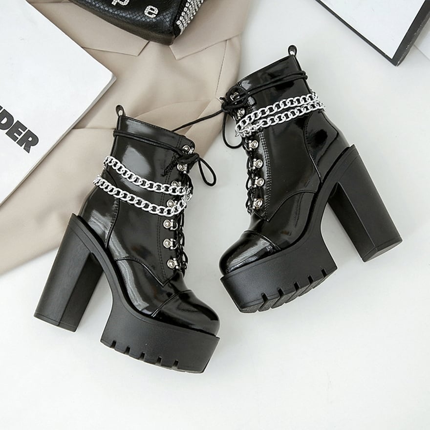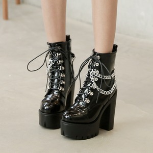 サブカル 服 地雷系 通販 ブーツ 厚底ブーツ ヒール高約14cm 筒高13cm プラットフォーム 軽量 PUレザー チェーン
