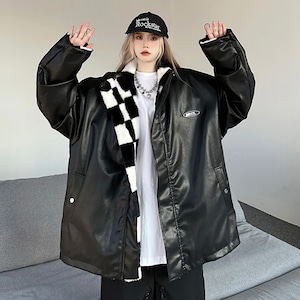 サブカル 服 地雷系 通販 レザージャケット PUレザー リバーシブル チェック柄 ビッグシルエット パンク