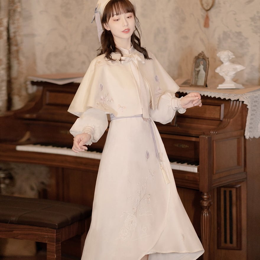 サブカル 服 地雷系 通販 セットアップ ショール ワンピ チャイナ服 中華服 刺繍 ラップスカート 甘め ホワイト ロリータ 華ロリチャイナ服