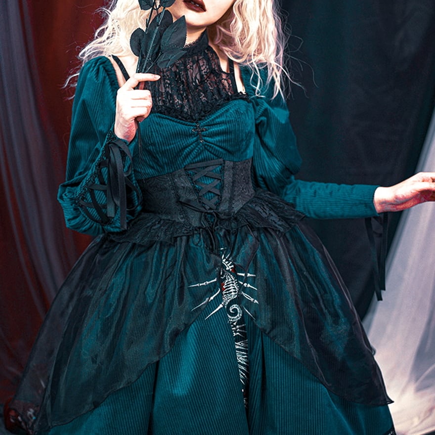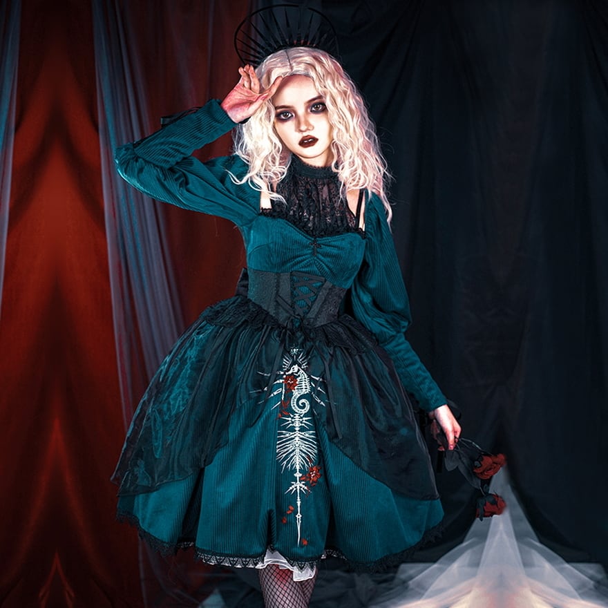 サブカル 服 地雷系 通販 ロリータ ワンピ レイヤード スカート ゴシック 闇 病みかわ 刺繍 タツノオトシゴ COS コンカフェ イベント衣装