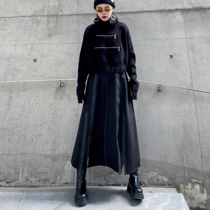 サブカル 服 地雷系 通販 スカート ハイウエスト ロング丈 スリット ZIPアップ 大人増し 闇かわいい モード服