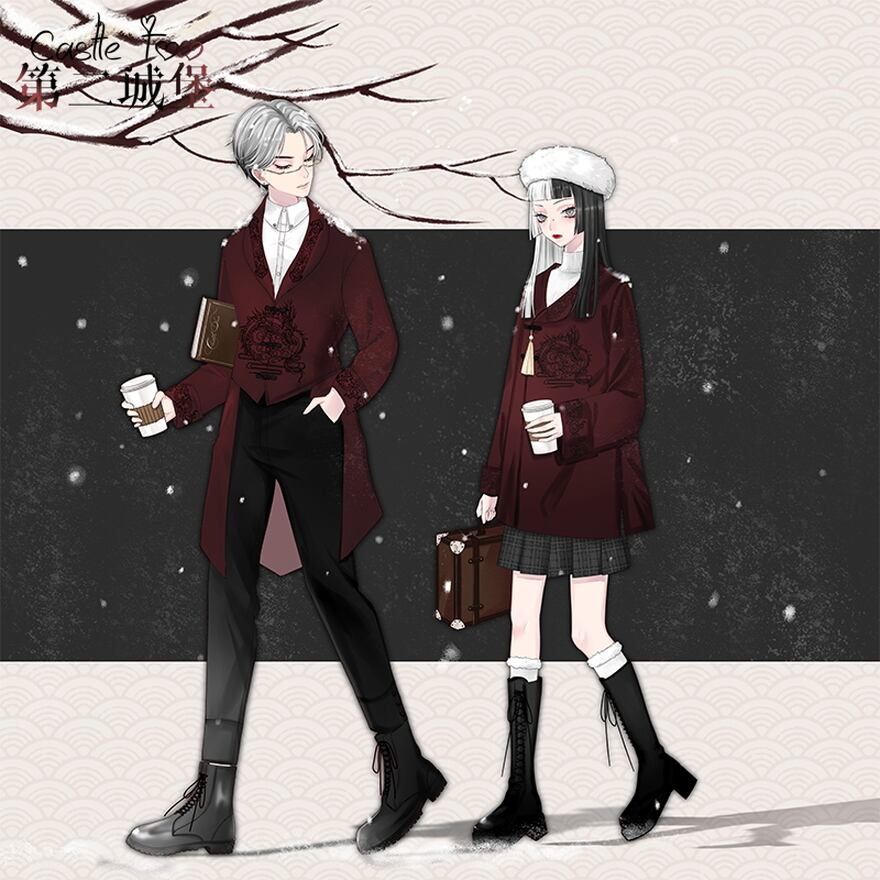 サブカル 服 地雷系 通販 ウールコート 王子系 華ロリ チャイナ刺繍 ドラゴン チャイナ風チャイナ服