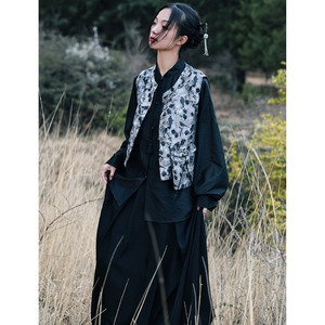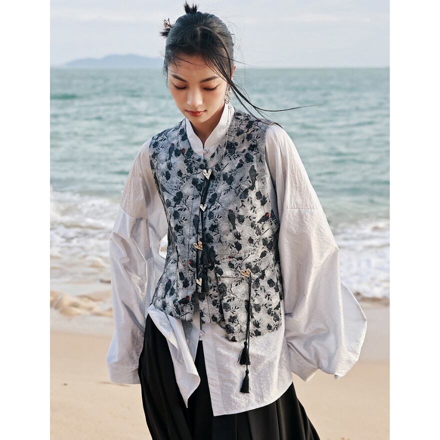 サブカル 服 地雷系 通販 チャイナ風服 大青龍肆 シャツチャイナ服 羽織り風 垂れ袖 艶感 大人きれい ゆったり ストリート系