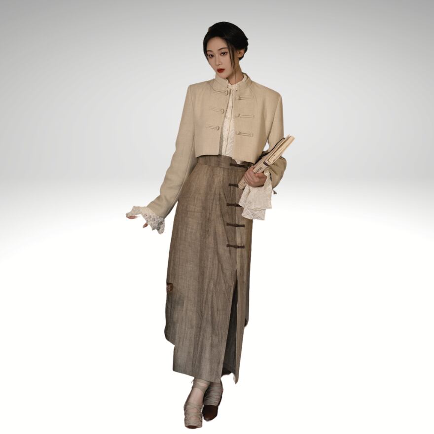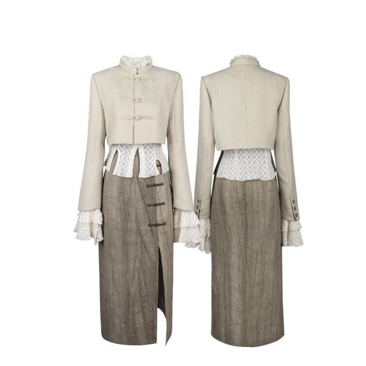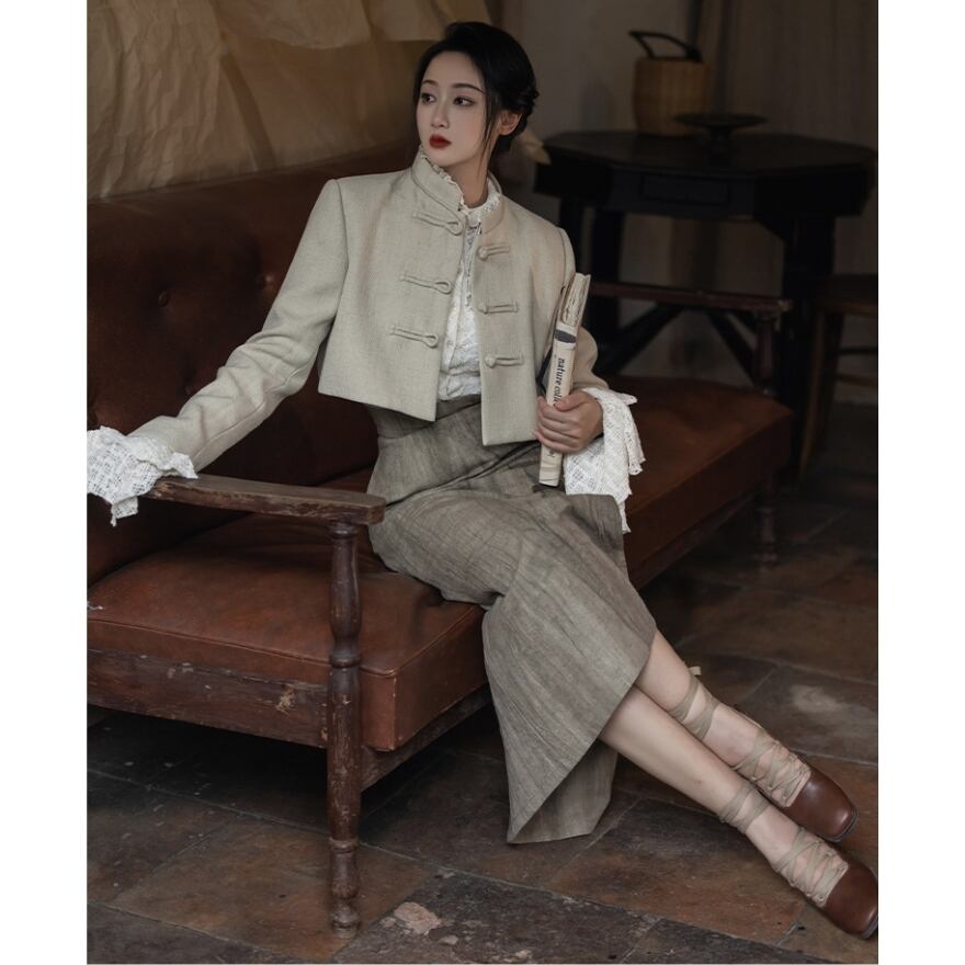 サブカル 服 地雷系 通販 納期30日 ?梦オリジナル チャイナスーツ ジャケット ショート丈 スタンドカラー レトロ モード系 大人きれいめ 大人増し