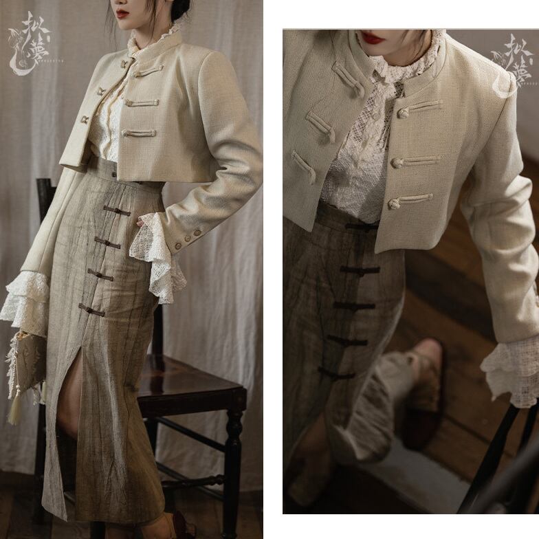 サブカル 服 地雷系 通販 納期30日 ?梦オリジナル ハイウエスト ロングスカート スリット入り サイドボタン チャイナ風 モード系 大人きれいめ 大人増し パーティ 女子会