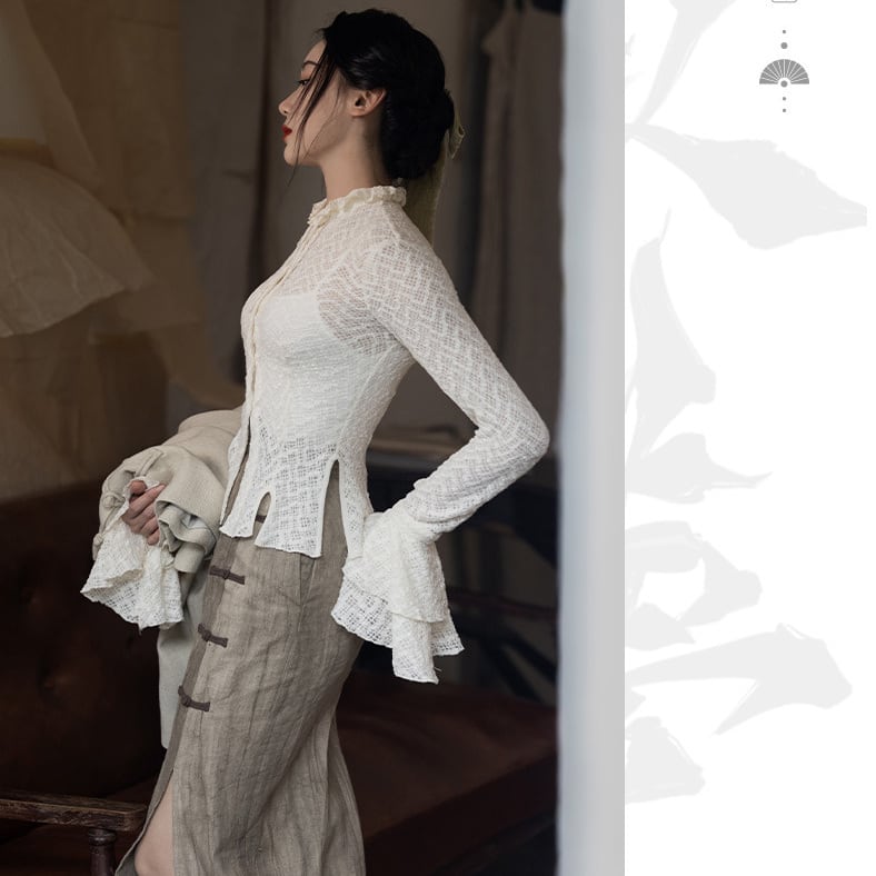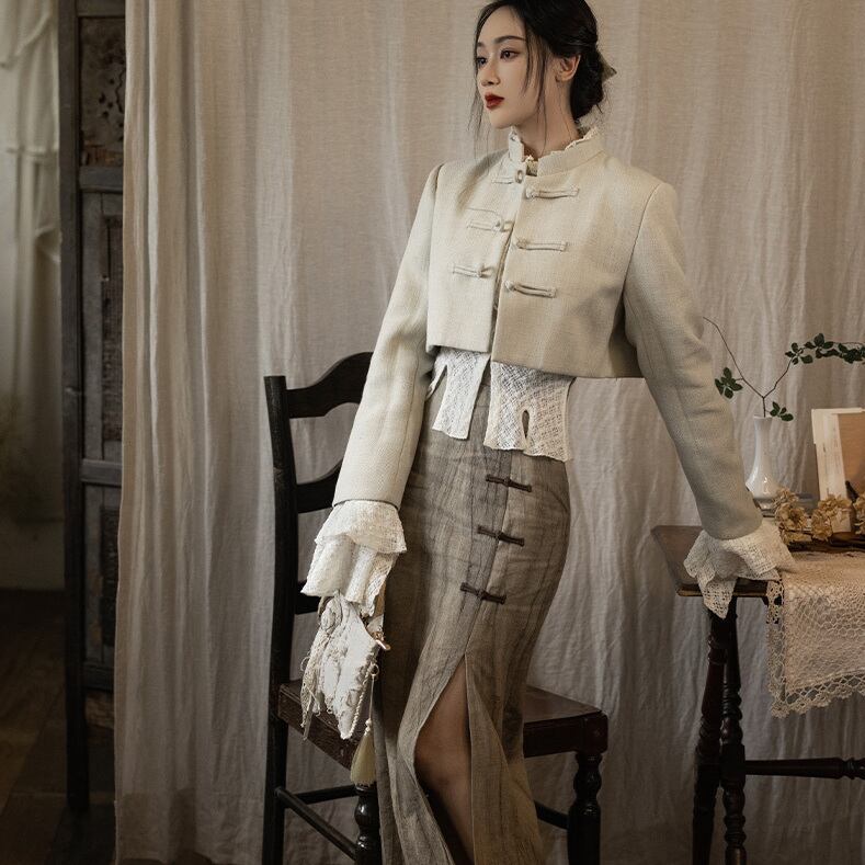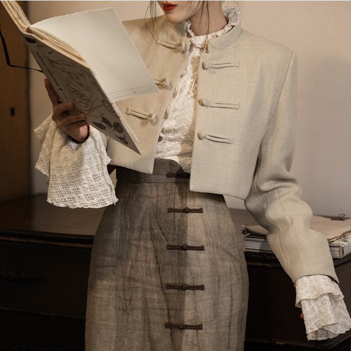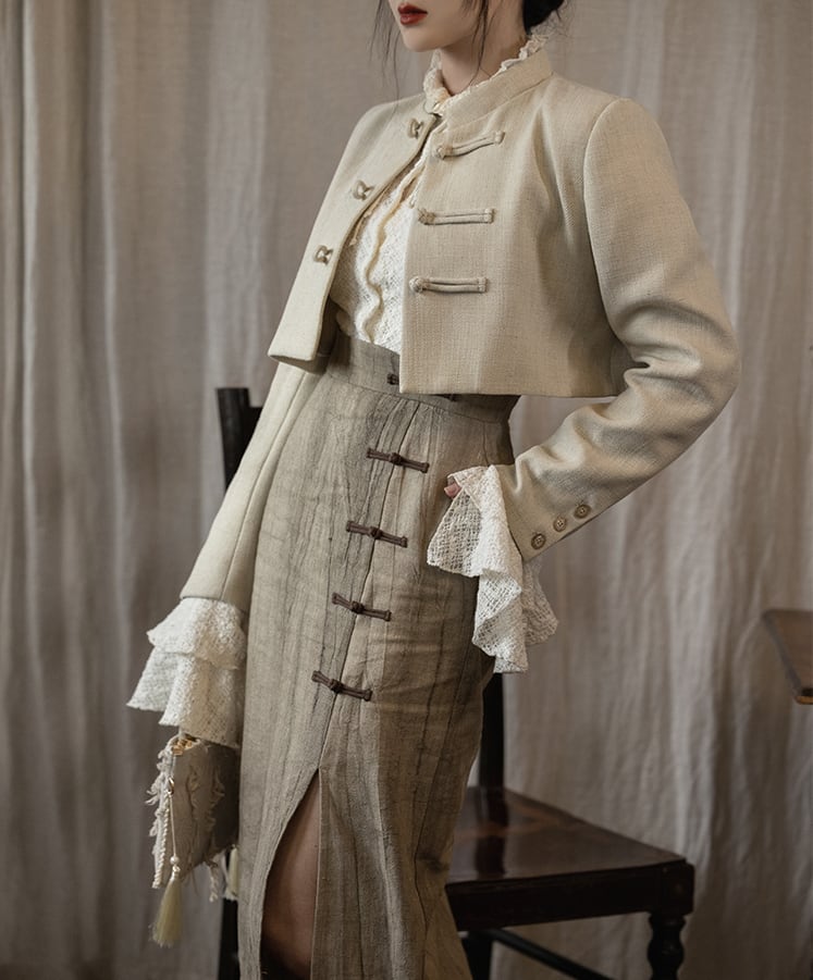 チャイナボタンのサイドスリットが大人可愛いモダンチャイナ風のロングスカートになります。