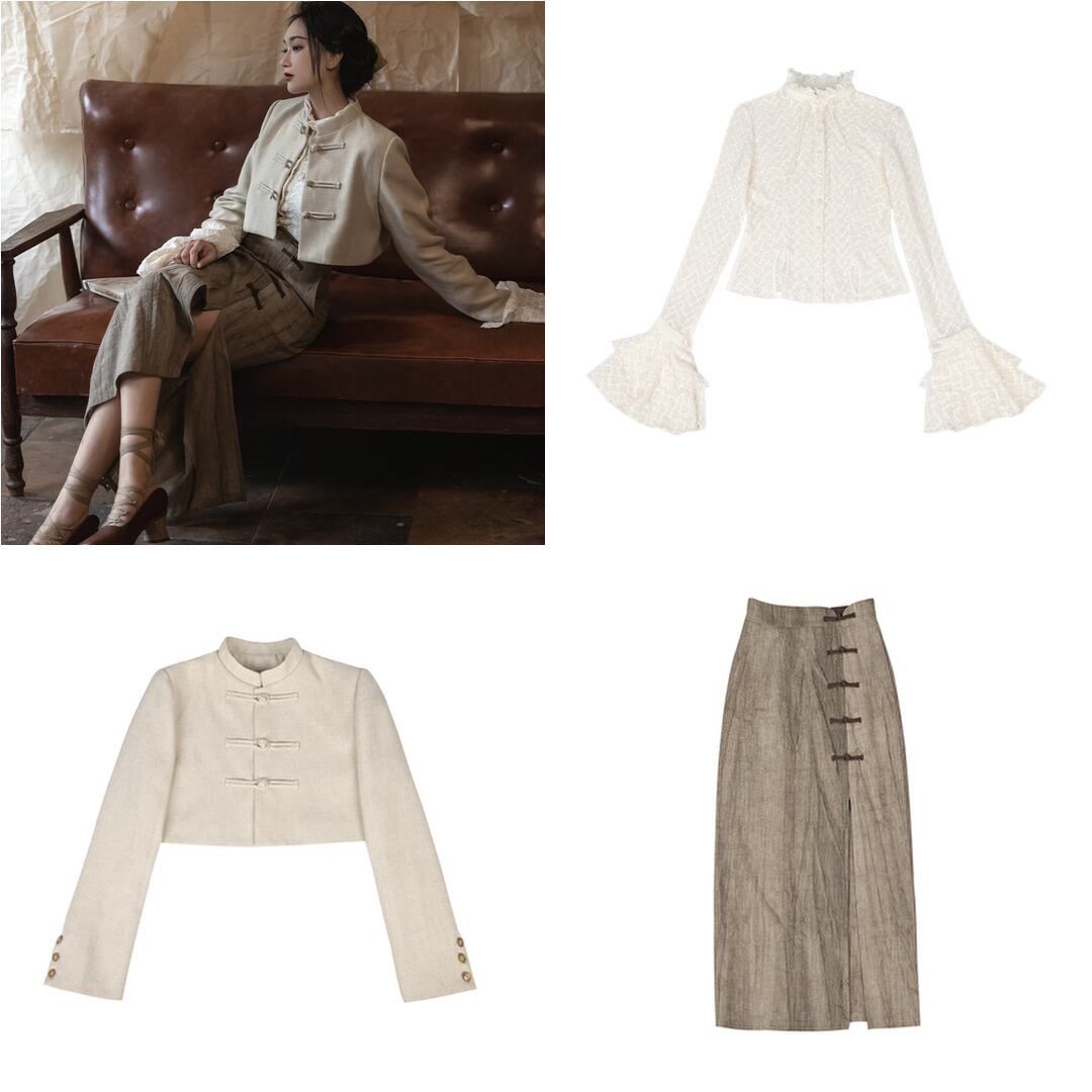 サブカル 服 地雷系 通販 納期30日 ?梦オリジナル チャイナスーツ 3点セット割り ジャケット ブラウス スカート 大人きれいめ チャイナ風 モード系 大人増し パーティ 女子会