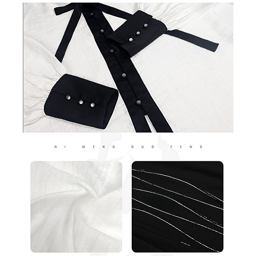 サブカル 服 地雷系 通販 納期30日 ?梦オリジナル ブラウス ネックリボン スタンドカラー 袖フリル チャイナ風 モード系 大人きれいめ 大人増し パーティ 女子会
