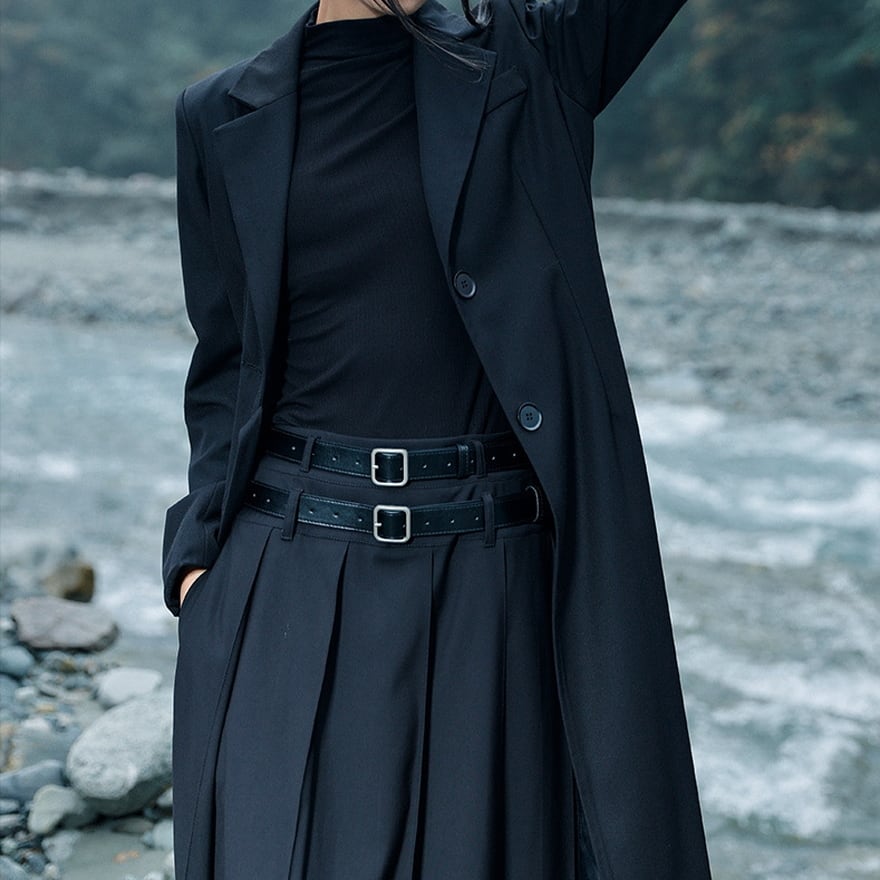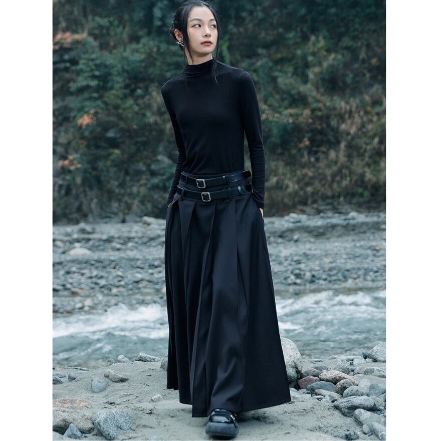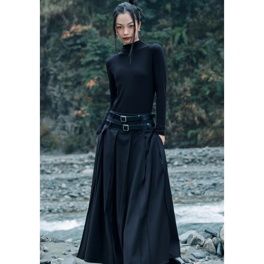 サブカル 服 地雷系 通販 チャイナ風服 大青龍肆 チャイナ服 プリーツ ロングスカート ベルト付属 ローウエスト 闇かわいい 大人増し クール サブカル服