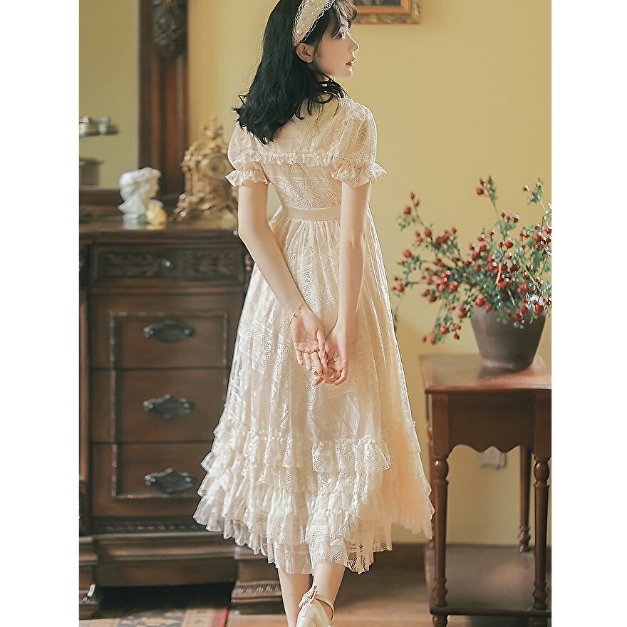 サブカル 服 地雷系 通販 ワンピース 長袖 ホワイトロリータ クラロリ クラシカルロリィタ フレンチロリータ ケーキスカート ウエディングドレス 上品 清楚 控えめ