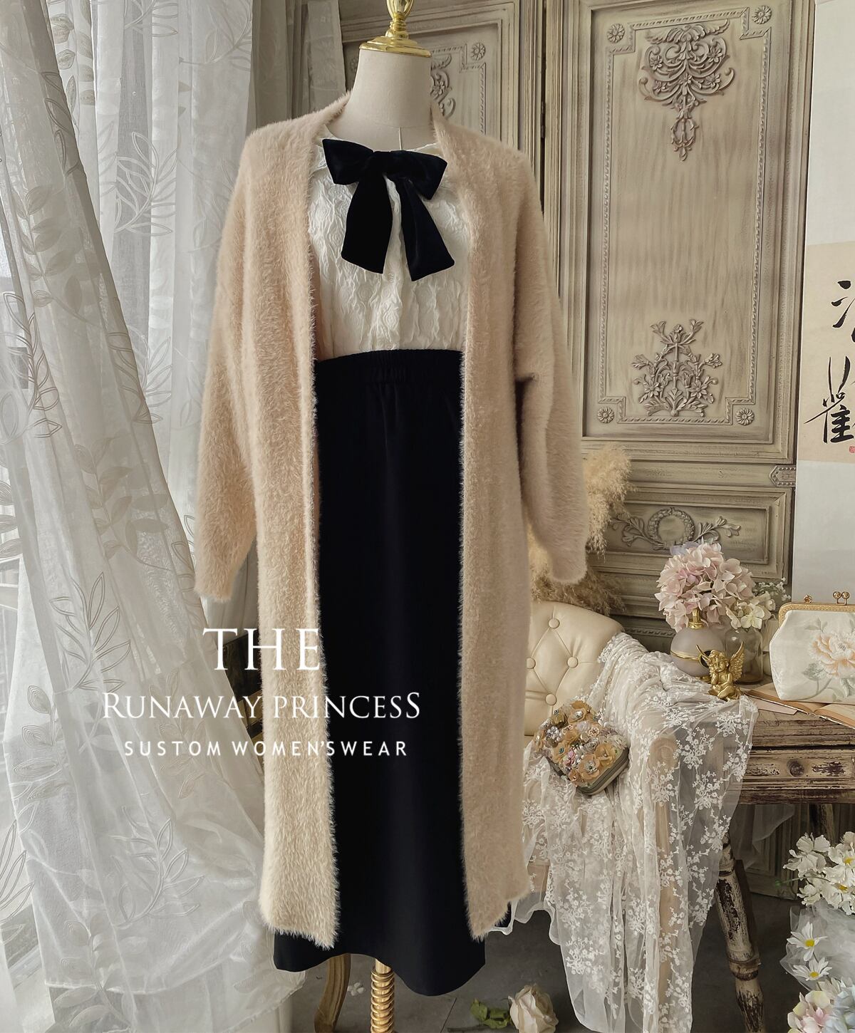 高見えなジャガード織りに大人可愛い大きめリボンが大人可愛い