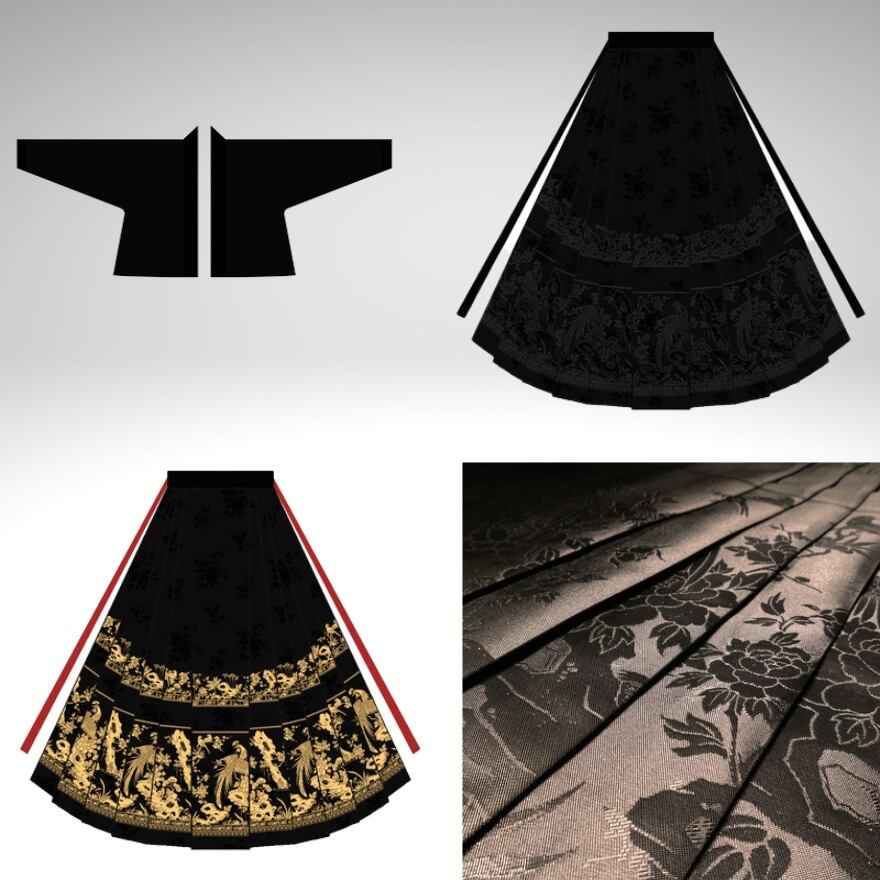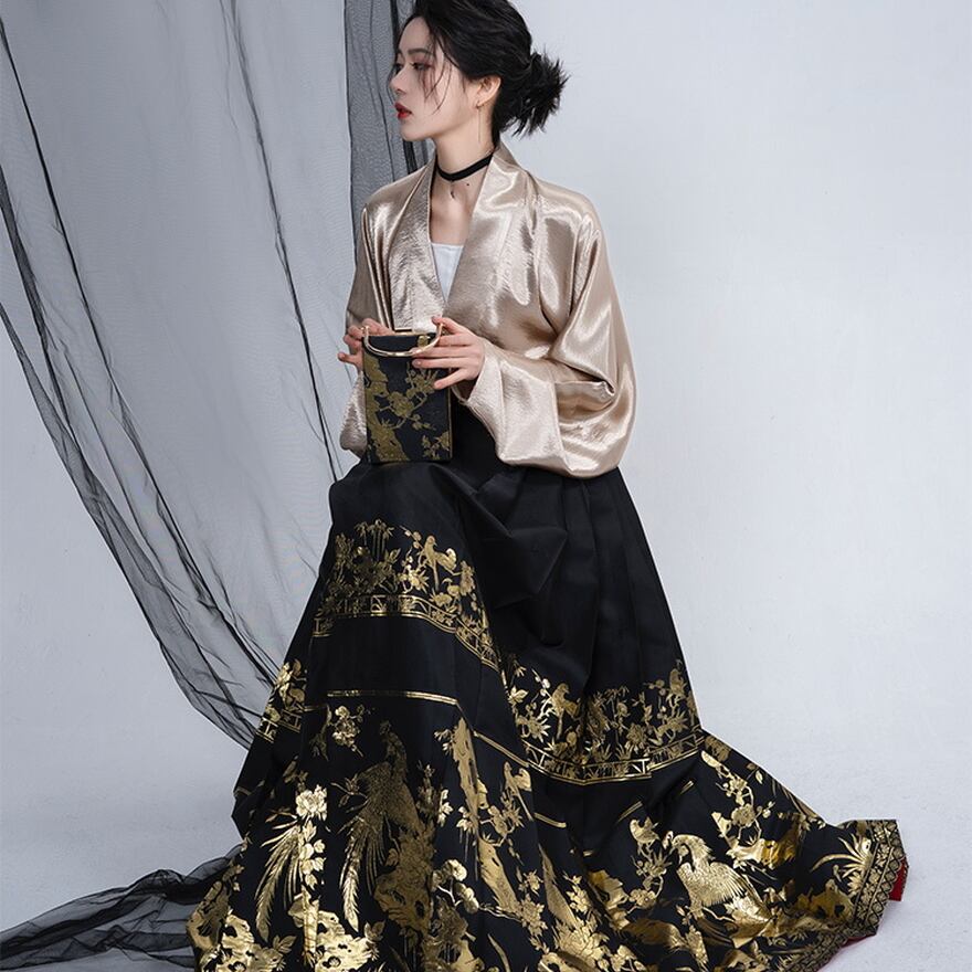 サブカル 服 地雷系 通販 納期30日 チャイナ服 漢服 ロングスカート プリーツ 鳳凰柄 金糸 大人増し