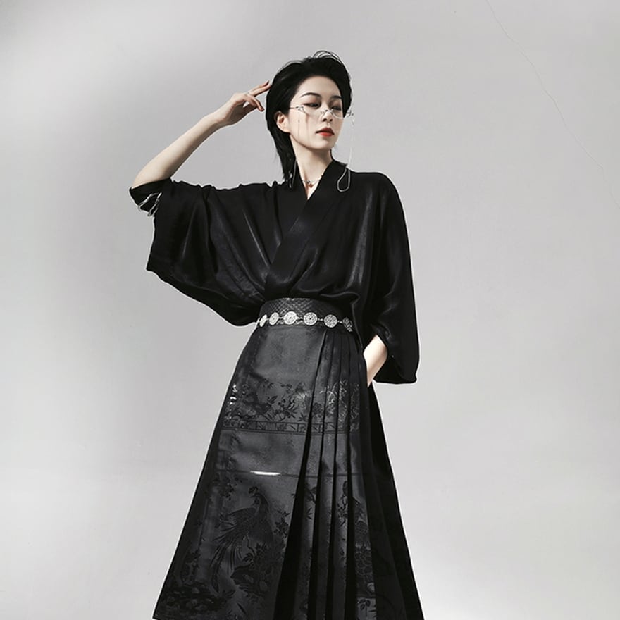 レトロで高見えな鳳凰柄がおしゃれなサブカル系チャイナ服ロングスカートです