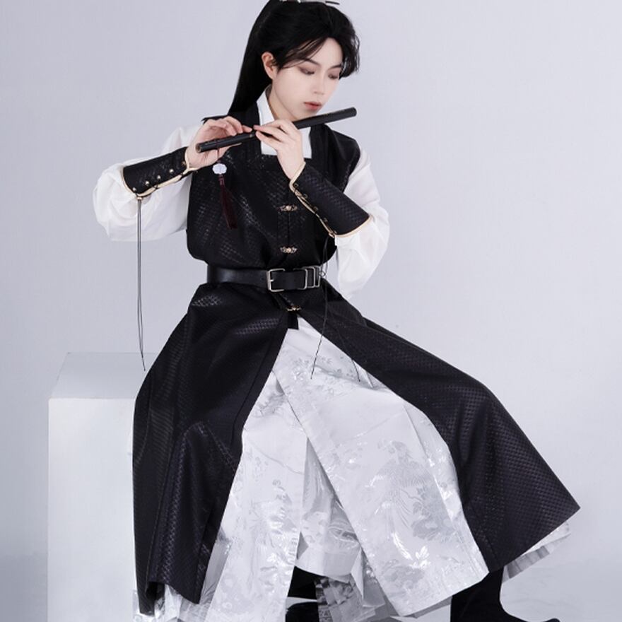 サブカル 服 地雷系 通販 納期30日 チャイナ服 漢服 民族衣装 ロングベスト ユニセックス 闇かわいい チャイニーズゴシック 大人増し クールチャイナ服 イベント 舞台衣装