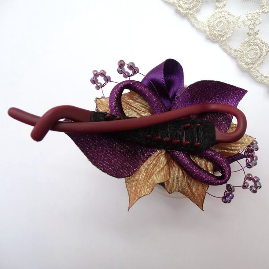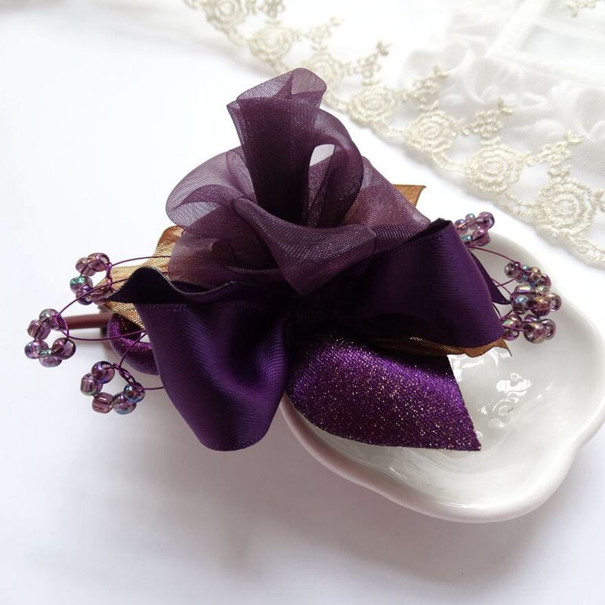 ビーズの飾り物と紫の薔薇がかわいいヘアピンです。