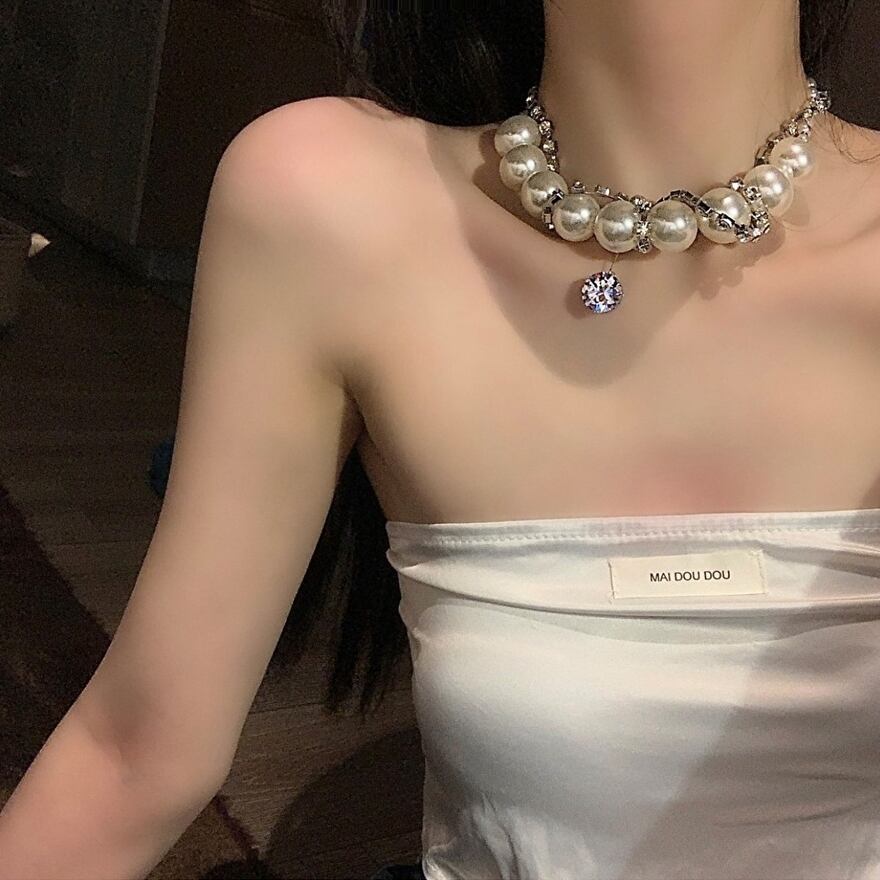 サブカル 服 地雷系 通販 ネックレス フェイクパール 大珠 チェーン 女子会 パーティ セレモニーコーデ