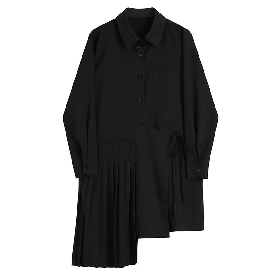 サブカル 服 地雷系 通販 春コーデ シャツワンピ アシンメトリー プリーツ 大人増し オルチャンファッション 韓国 モード服 女子会 セレモニーコーデ