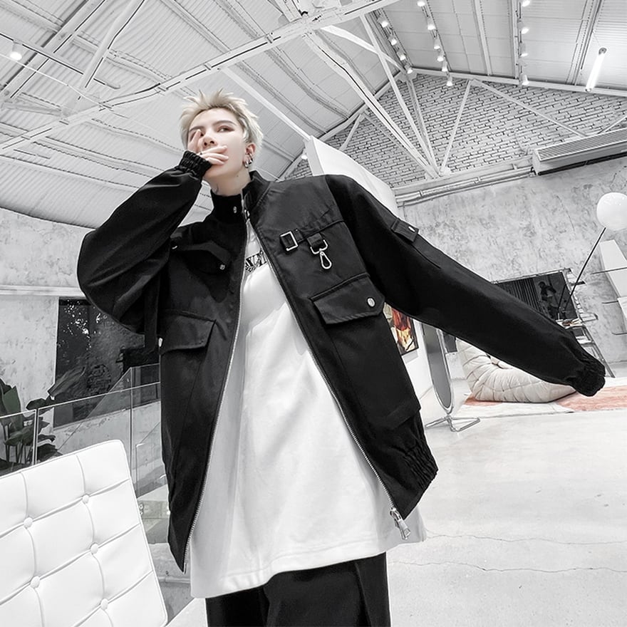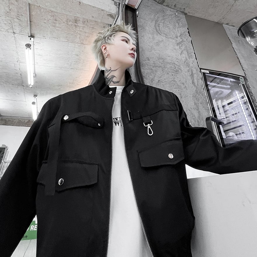 サブカル 服 地雷系 通販 メンズ ジャケット ハイネック ストラップベルト オーバーサイズ メタルギア かっこいい クール