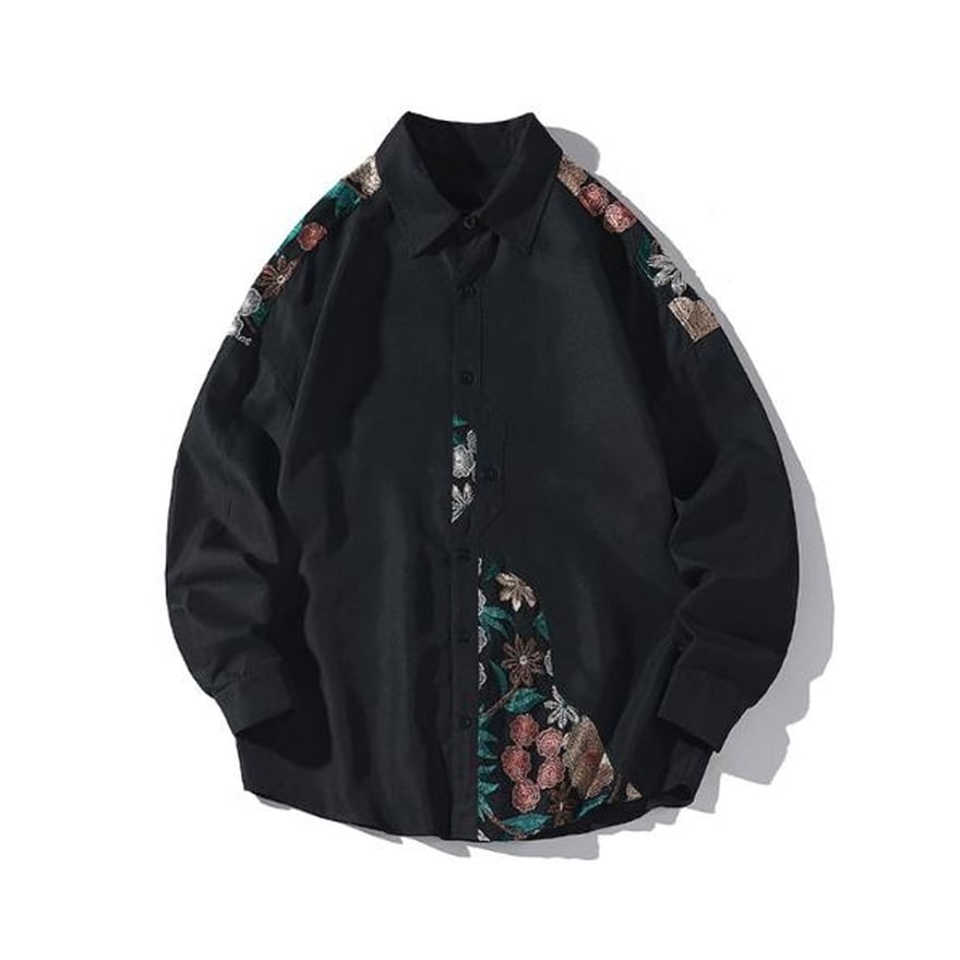 ショップ人気のメンズ花柄刺繍の長袖シャツです