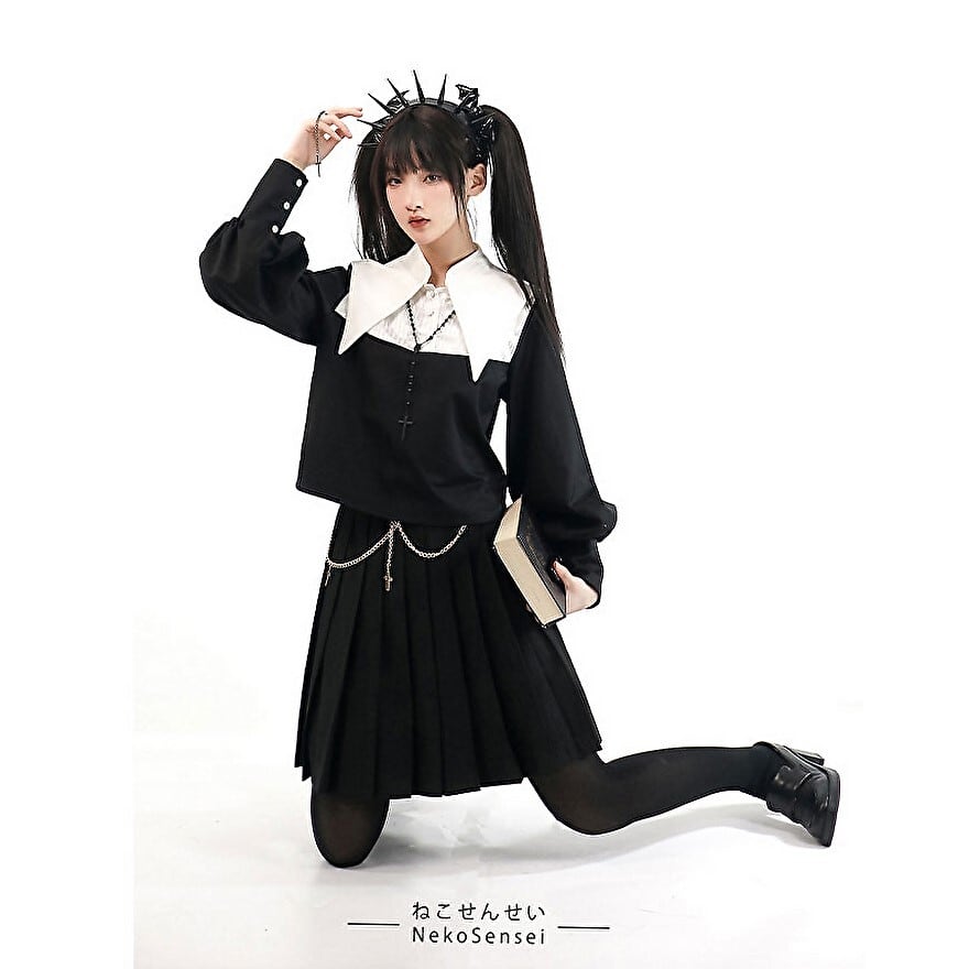 病み可愛い修道女見習い制服のプリーツミニスカです。