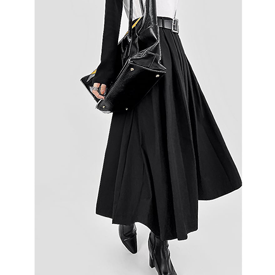 サブカル 服 地雷系 通販 プリーツ スカート ミドル丈 Aライン 細見え きれいめ 大人モード服 女子会 セレモニーコーデ