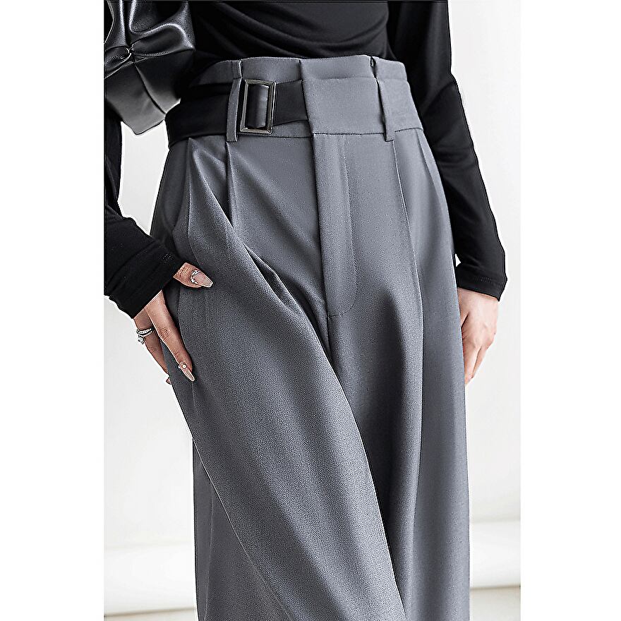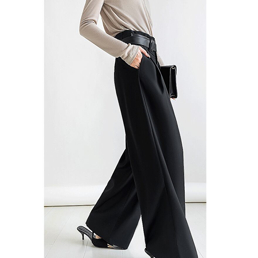 サブカル 服 地雷系 通販 パンツ ダブルウエスト タック入り PUレザー ベルト ワイドパンツ 脚長 美脚 大人きれいめ モード服 女子会 セレモニーコーデ