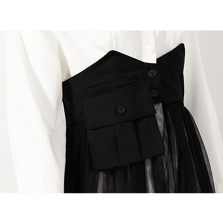 サブカル 服 地雷系 通販 シャツワンピ フェイクツーピース バイカラー レース レイヤード ハイウエスト ポシェット 大人かわいい 大人増し きれいめ 女子会 セレモニーコーデ