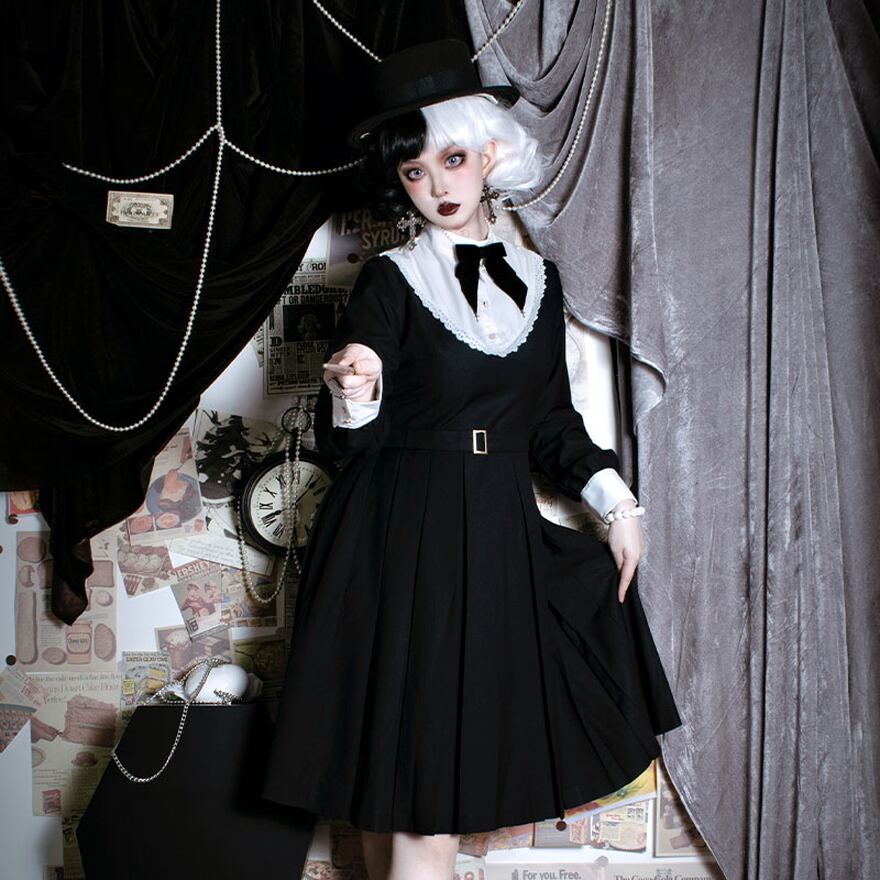 サブカル 服 地雷系 通販 ワンピース プリーツスカート ミドル丈 修道女見習い 制服 魔法学園 ロリータ 闇かわいい ゴスロリ好き COS コンカフェ 舞台衣装