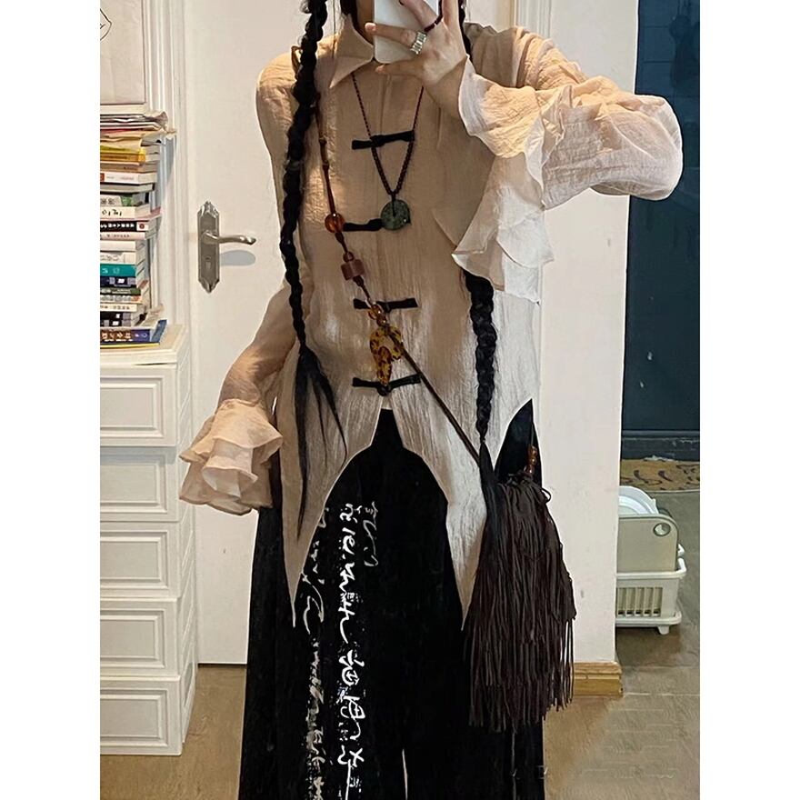 サブカル 服 地雷系 通販 ブラウス トランペットスリーブ レトロ チャイナ風チャイナ服 闇かわいい