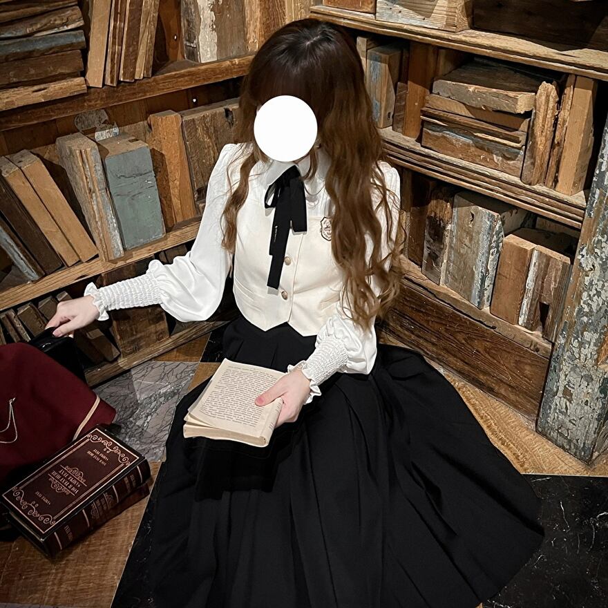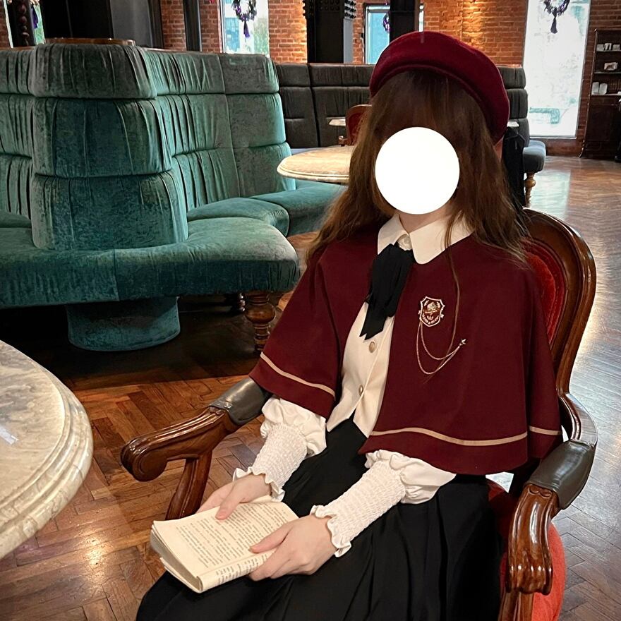 サブカル 服 地雷系 通販 オールインワン 4点セット割り マント ブラウス ベスト プリーツスカート 学園服 制服 クラロリ レトロ 甘め ロリータ 可愛い コンカフェ イベント衣装