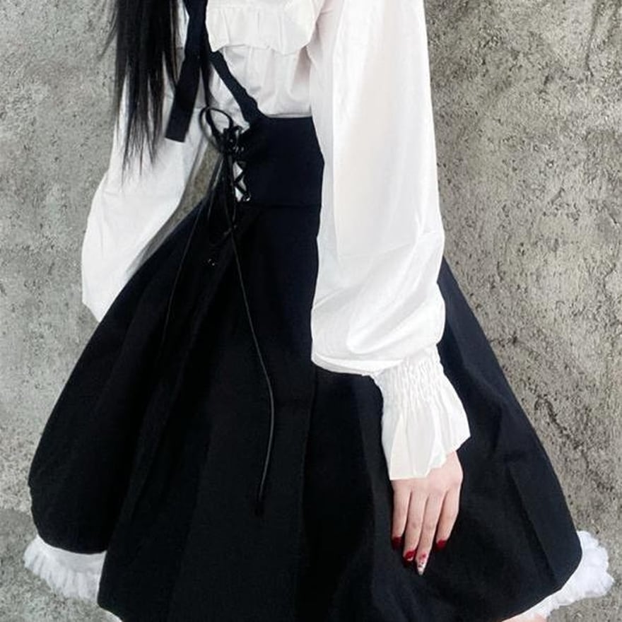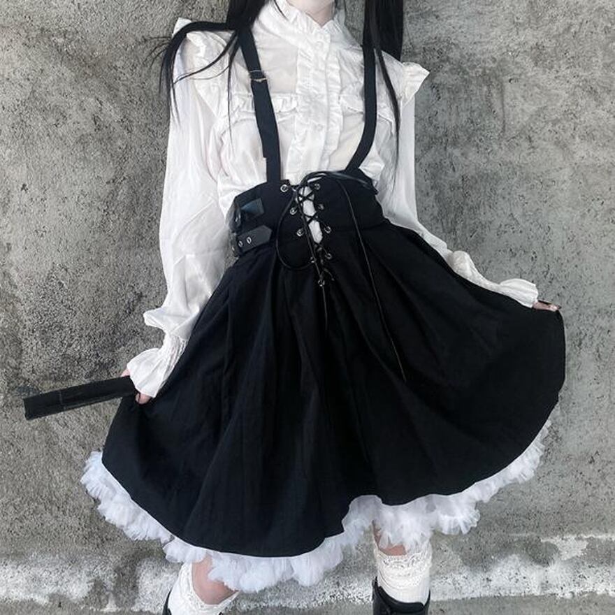 サブカル 服 地雷系 通販 サスペンダースカート ハイウエスト 編上げ ゴスロリ かわいい
