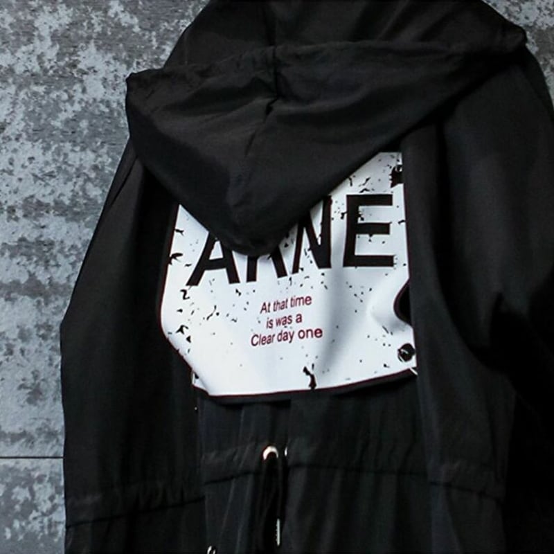 サブカル 服 地雷系 通販 スプリングコート ウィンドブレーカー ユニセックス ロング丈 オーバーサイズ バッグロゴ ストリート系