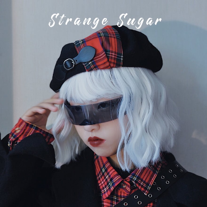サブカル 服 地雷系 通販 ベレー帽 チェック柄 キャップ バックルベルト レザー ハンドメイド パンク バンギャ サブカルファッション