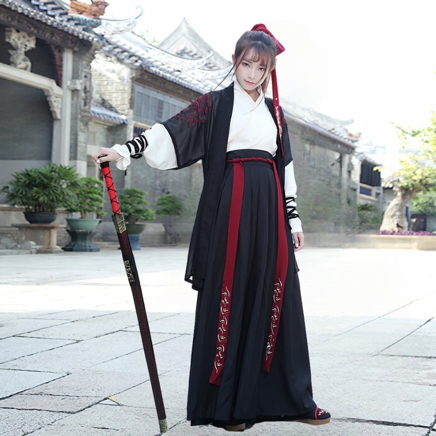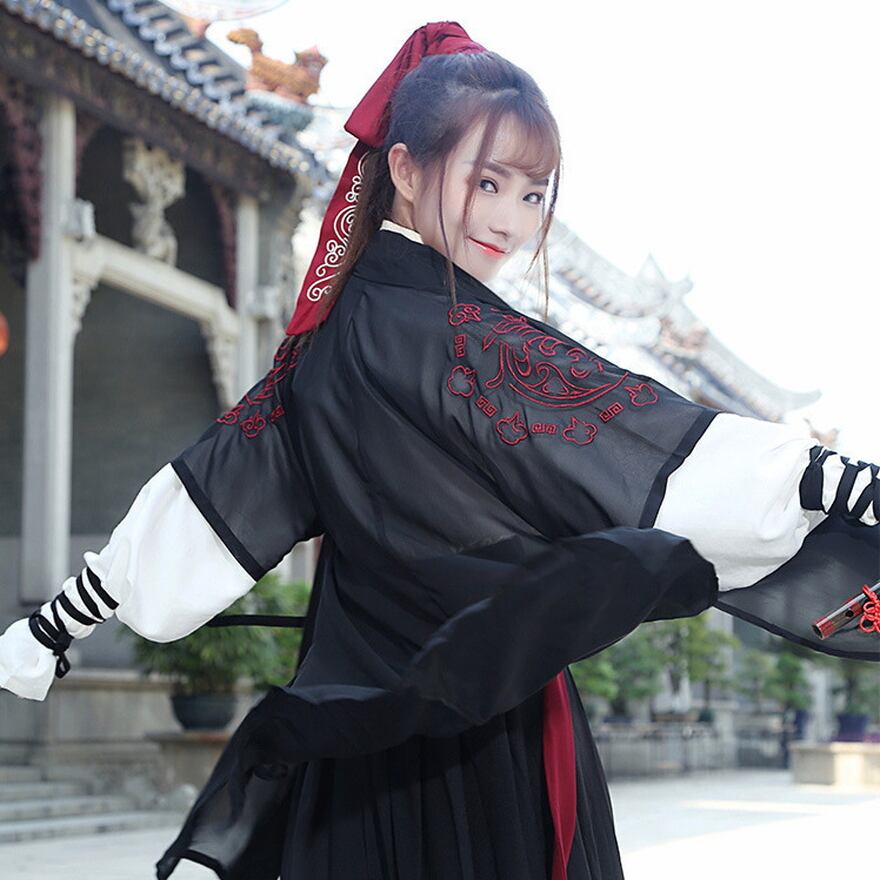 サブカル 服 地雷系 通販 スリーピース チャイナ服 漢服 刺繍 ユニセックス 民族衣装 羽織り 和装シャツ スカートチャイナ服
