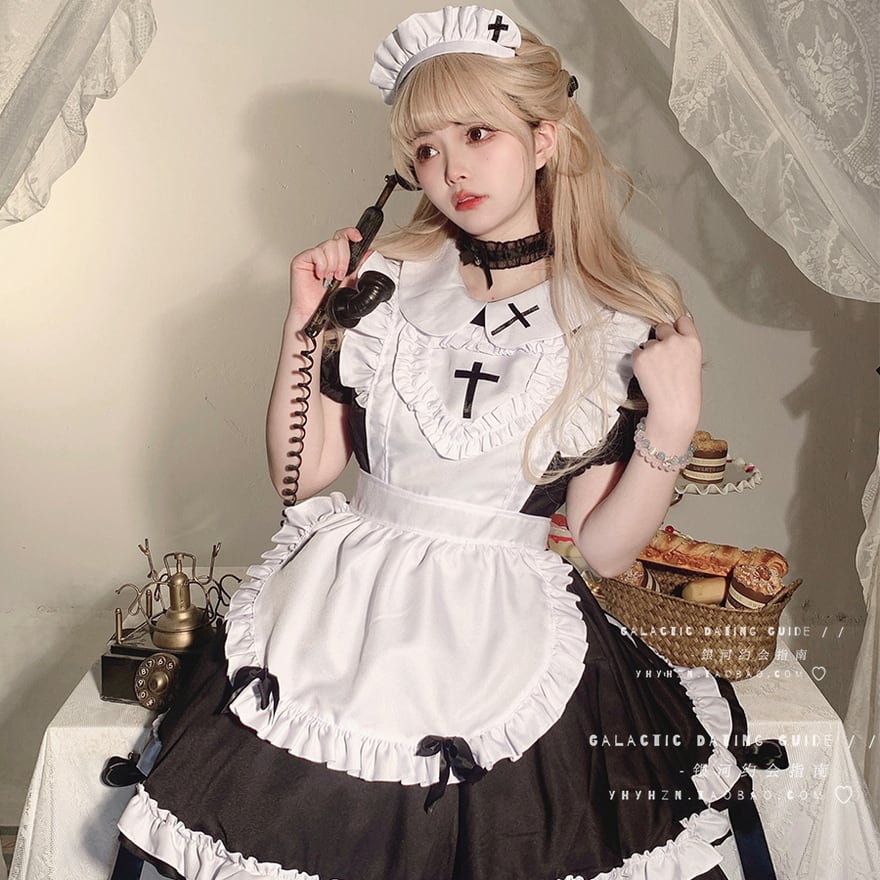 ゴシックな十字架が病み可愛いメイドカフェ衣装のフルセットです。