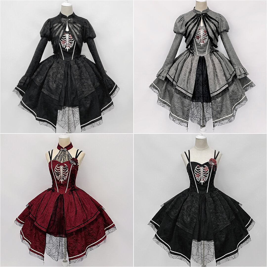 サブカル 服 地雷系 通販 予約納期30日 セットアップ ボレロ JSK スケルトン 薔薇 PUレザー ハードゴシック 闇かわいい バンギャ イベント衣装